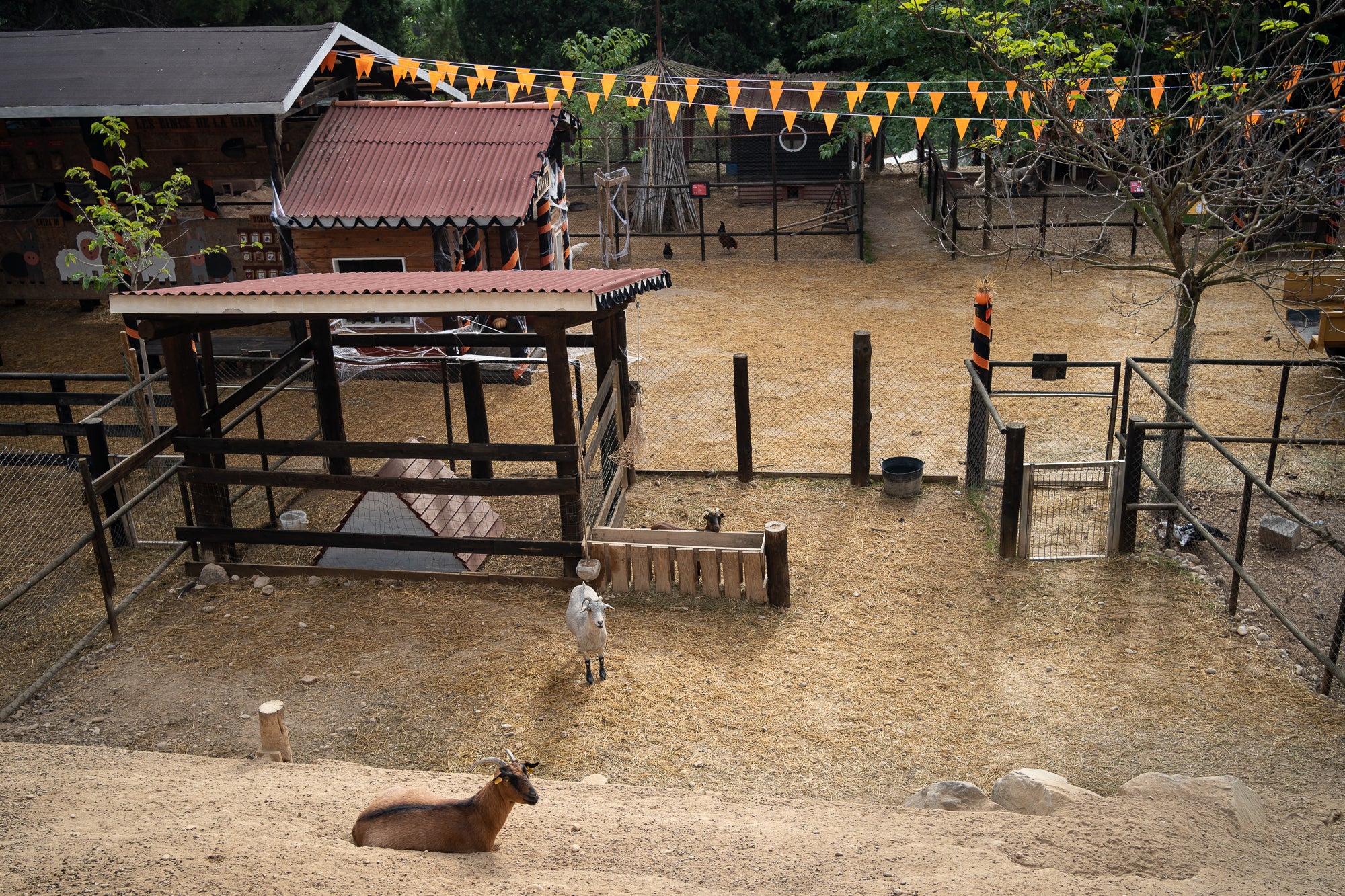 És un projecte que neix d’una crisi i que, de moment, les ha sobreviscut. Era el 2011 i el Juan Carlos, constructor, havia aguantat fins llavors la ruïna econòmica del 2008. La Naiara buscava canviar d’aires, i la María José també. Van trigar dos anys a aconseguir tots els permisos i llicències necessaris. Van obrir el 2013, i des de llavors han aguantat aquesta barreja de parc d’aventures per nens, i “granja” educativa. Només volien tenir una petita zona amb animals de granja, però han acabat adoptat fins a animals exòtics.