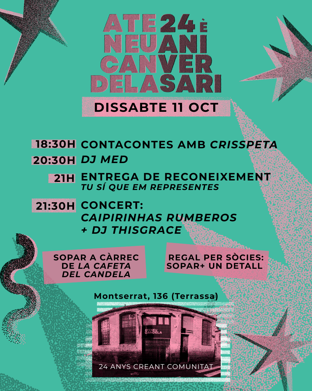 “Des del Candela, volem convidar a totes les ciutadanes de Terrassa a venir a celebrar els 24 anys de centre social autogestionat, amb les ganes i l’alegria de seguir-ne celebrant molts més plegades”, subratllen.