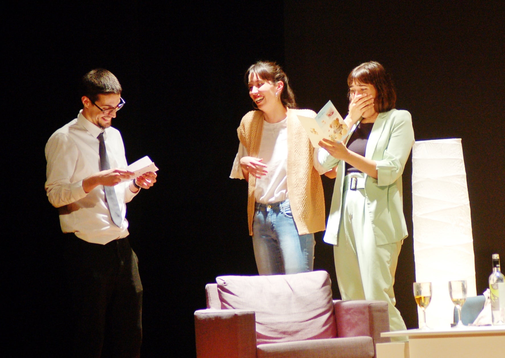 Pel que fa les interpretacions, cal destacar que les dues actrius i els dos actors saben mantenir el ritme alt que l’obra demana. El terrassenc David Magaña (en el paper de Damià, l’amfitrió del sopar) sap posar-se en la pell del personatge superat pels esdeveniments, bonhomiós i un pèl innocent. També les actuacions de les dues actrius són destacables: Sandra Cendra (en el paper de mare jove. Histèrica per les circumstàncies i pel secret que amaga) i Paula García (la Marta, parella de l’Alan, que juga al difícil equilibri de ser parella i amiga al mateix temps). Finalment, Sergi Benet, que interpreta l’Alan, l’amic passat de voltes i que dona el toc de color per la seva excentricitat. Personatge simpàtic i enèrgic, però que hauria de cuidar la vocalització i dicció en els moments clau de l’obra. La direcció del muntatge és encertada: clara, neta i a favor del ritme de l’espectacle. L’escenografia és senzilla, però molt encertada, així com els efectes de llum per indicar els canvis d’habitació.