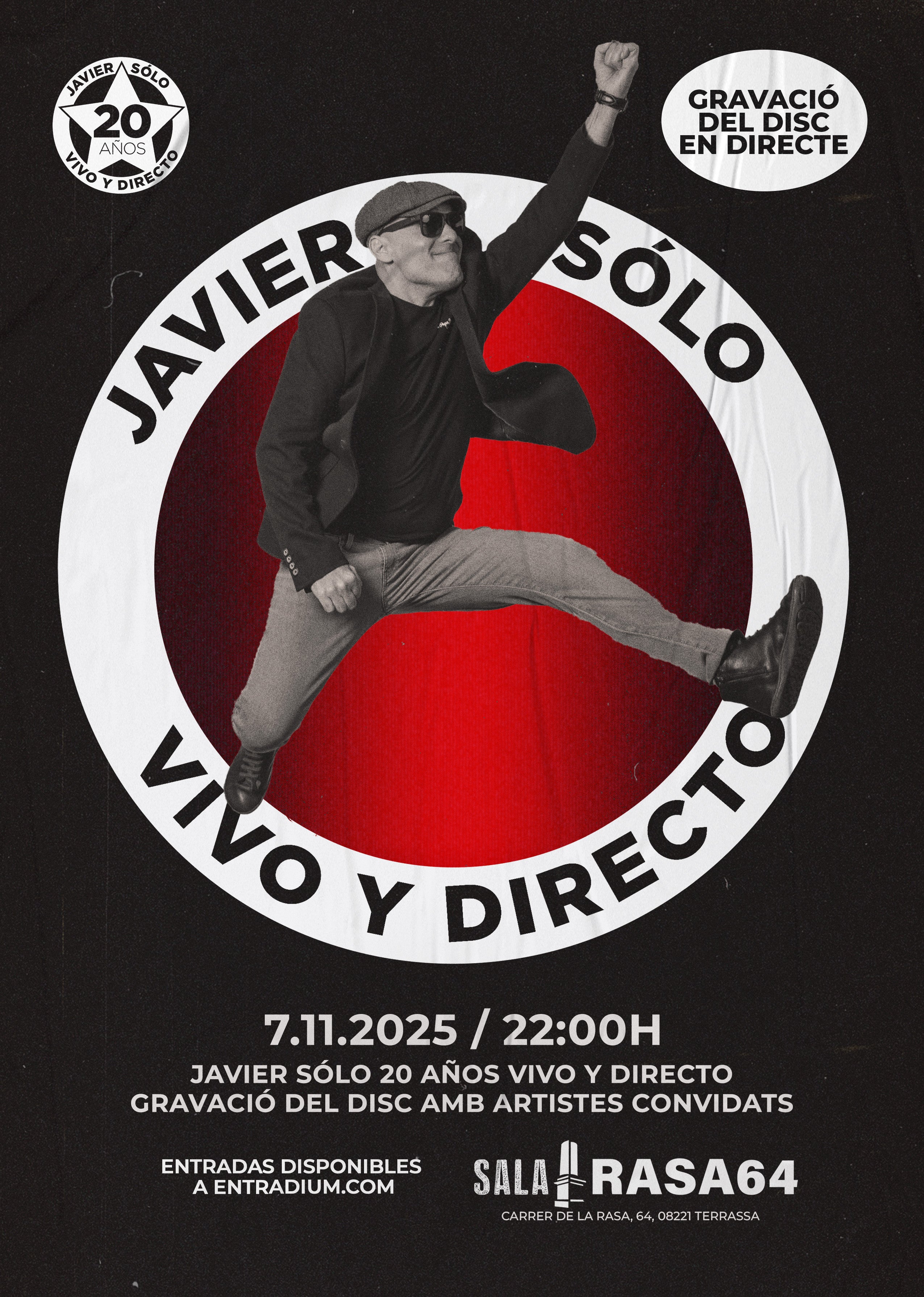 El cantautor terrassenc Javier Sólo torna a la ciutat que el va veure créixer com artista per celebrar dues dècades de trajectòria amb un concert “únic” a Terrassa. La cita, que tindrà lloc aquest pròxim divendres, 7 de novembre, a la Sala Rasa 64 a les 22:00 hores, convertirà la sala del carrer de La Rasa en un gran estudi improvisat i on Sólo enregistrarà algunes de les cançons que han marcat la seva llarga trajectòria.