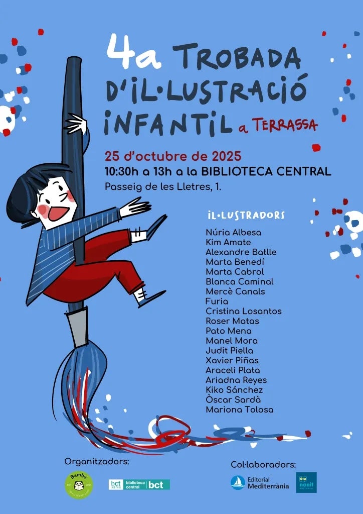 Durant tot el dia, hi haurà la presència dels artistes, que presentaran i signaran els seus treballs a tots aquells que s’acostin a la festa. Enguany, cal destacar la presència de grans il·lustradors com Kim Amate o Marta Cabrol, a més d’altres reconeguts professionals de la il·lustració infantil d’arreu de Catalunya que també han volgut participar-hi, com Cristina Losantos, Òscar Sardà, Mercè Canals, o Pato Mena, entre d’altres. Aquest any, entre les editorials que hi seran presents amb les seves parades, en sobresurt la col·laboració de l’Editorial Mediterrània i Nanit.