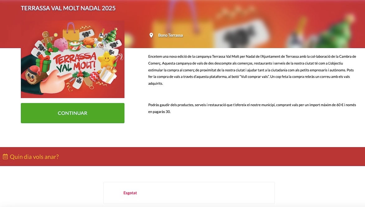 Bogeria per aconseguir els Vals de Nadal. Un any més, la campanya de descomptes per comprar en comerços de Terrassa ha estat un èxit. Amb menys de dues hores s’han volatilitzat. Aquest dimarts, dia 2 de desembre, s’havia anunciat per mar, terra i aire que s’iniciava una nova edició d’una iniciativa impulsada des de la Cambra de Comerç amb l’Ajuntament de Terrassa. Després de quatre edicions, tothom s’esperava que aquesta tornés a causar sensació.
