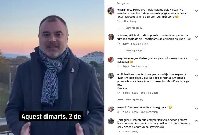 Tanmateix, això no ha evitat que en menys de dues hores els vals desapareguessin, deixant a centenars de persones amb la mel als llavis i sense poder gaudir d’aquesta promoció. Per a molts, els sembla que obtenir un d’aquests tiquets és missió impossible. Les queixes han començat a aparèixer a les xarxes socials, on la majoria recalca que s’ha passat més d’una hora fent la cua virtual per després quedar-se amb les mans buides. “He intentat accedir amb tres mòbils diferents i res, no hi ha hagut manera. Cada vegada em sortia un cartell que em deia que no estava acreditada o que les dades no s’acceptaven, i m’enviava de nou a la cua. És molt bèstia, això! Per a persones com jo que aquests vals ens ajuden a poder fer les compres de Nadal, i que ni llevant-me a les set del matí per ser la primera a ser davant de la pantalla, i així i tot no ho aconsegueixis, és una vergonya”, ha exclamat indignada la @pitufinagb, en un missatge a MónTerrassa.