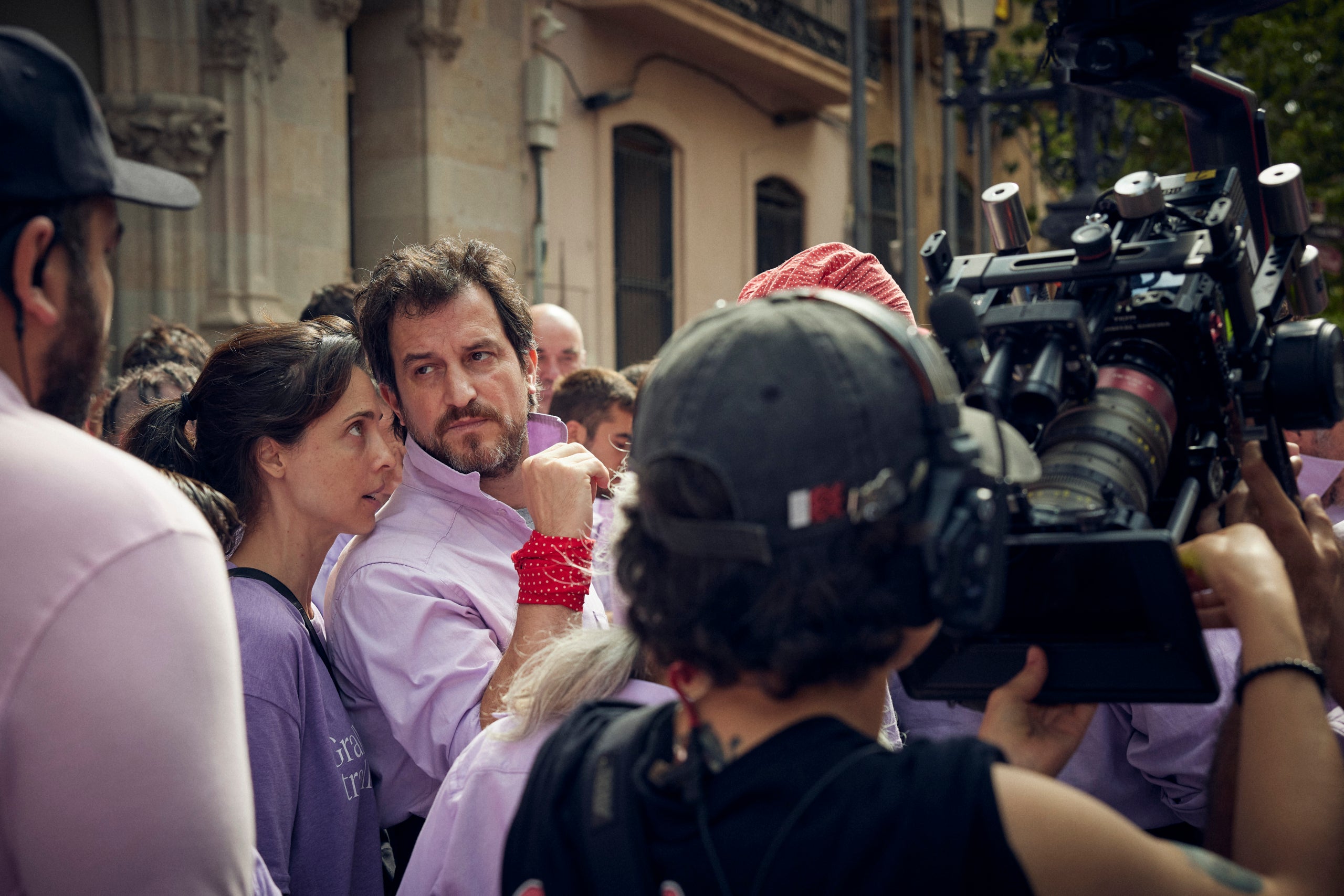 La nueva sede de los Minyons de Terrassa se ha vuelto a convertir en un plató de rodaje este martes por la tarde. Las camisas malva han compartido espacios a Cal Reig, en la calle de la Madre de Deu dels Àngels, con los actores y todos los técnicos. La nueva sede de la colla terrassense es espectacular. Y la gente de los Minyons ha hecho silencio sepulcral cuando se los ha pedido en los momentos de rodaje, como si se tratara de hacer un tres de deu con forro y manillas. Todo, en medio de carpas en el patio y en el interior, junto al bar.