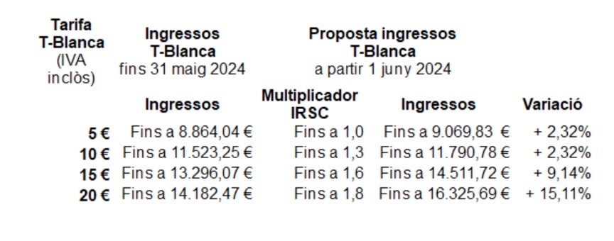 La T-Blanca permite hacer más accesible el transporte público a los colectivos más vulnerables, como la gente mayor y las personas con discapacidad. El coste de la tarjeta es anual y viene determinado por el nivel de ingresos de la persona que lo solicita, de forma que a menos ingresos menor coste de la tarjeta. En este sentido, con la propuesta presentada a la comisión se amplía el tope de ingresos de las cuatro tarifas actuales de 5, 10, 15 y 20 euros cada una.