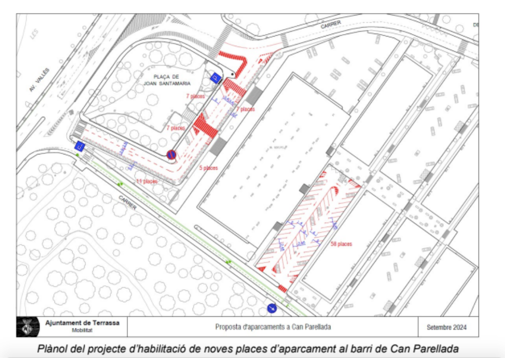Este mes de octubre, el Ayuntamiento de Terrassa llevará a cabo trabajos de pintura y señalización en el barrio de Can Parellada para habilitar 95 plazas de aparcamiento reguladas y gratuitas en la vía pública. Con esta acción, el Consistorio responde a una demanda que la asociación vecinal del barrio había realizado al gobierno local.