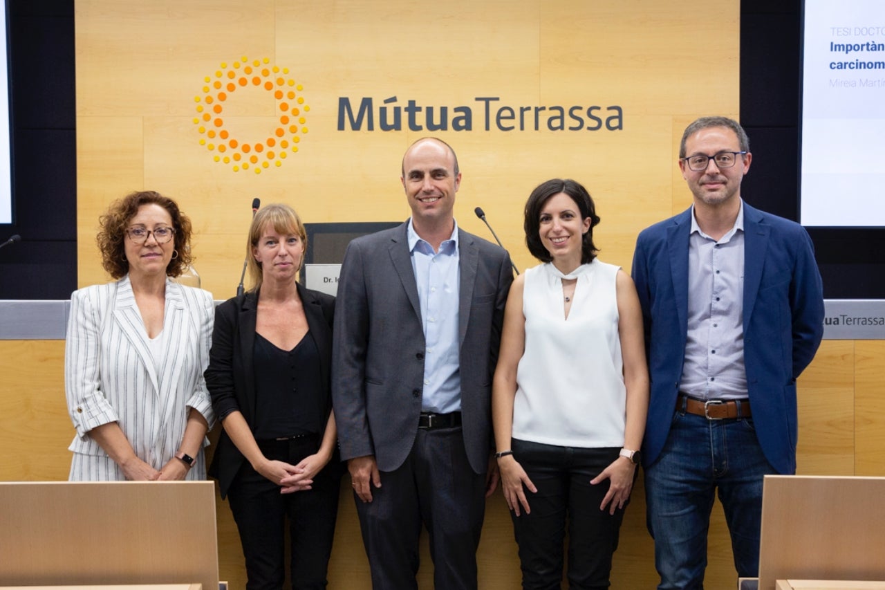 El edificio docente de MútuaTerrassa ha acogido el acto de defensa de la tesis doctoral “Importancia de la centralidad tumoral en el carcinoma pulmonar no célula pequeña” desarrollada por Mireia Martínez Palau, adjunta al servicio de Neumología del Hospital Universitario MútuaTerrassa (HUMT). El Dr. José Sanz Santos, jefe del servicio Neumología de la HUMT, se ha encargado de dirigirla y tutorizarla.