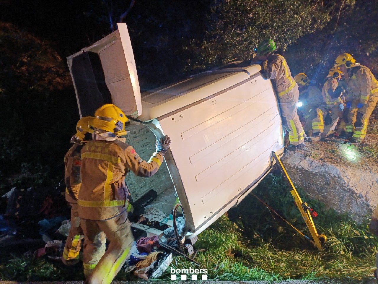 Dos personas resultaron heridas al volcar la furgoneta en la C-58 en el término municipal de Vacarisses. El teléfono de emergencias 112 recibió un aviso este jueves, día 20 de noviembre, pocos minutos después de las ocho y media de la noche (20:35h) alertando de un fuerte accidente de tráfico en la carretera de la Bauma. En concreto, se indicaba que el vehículo afectado se encontraba en el punto kilométrico 26, en sentido Terrassa. No había ningún otro vehículo implicado en el incidente.