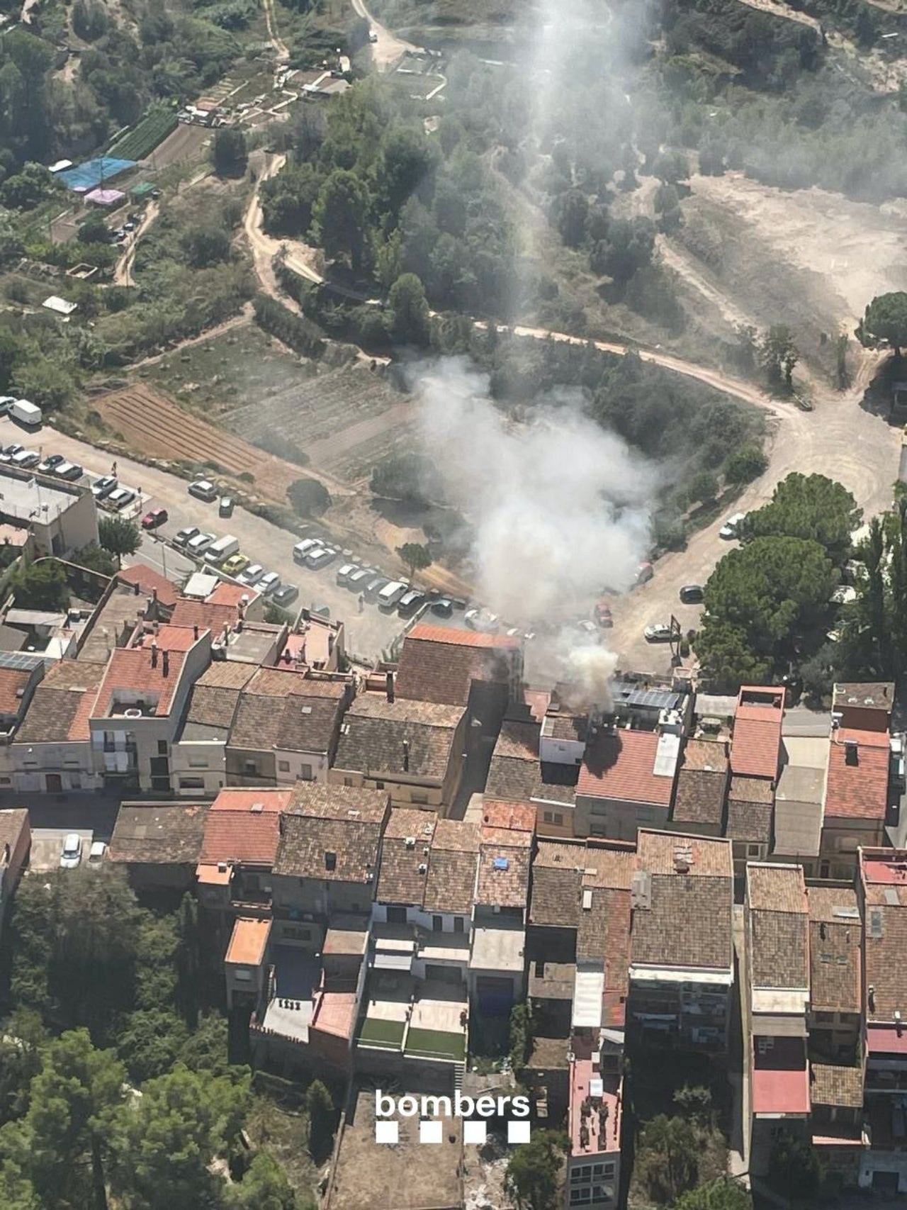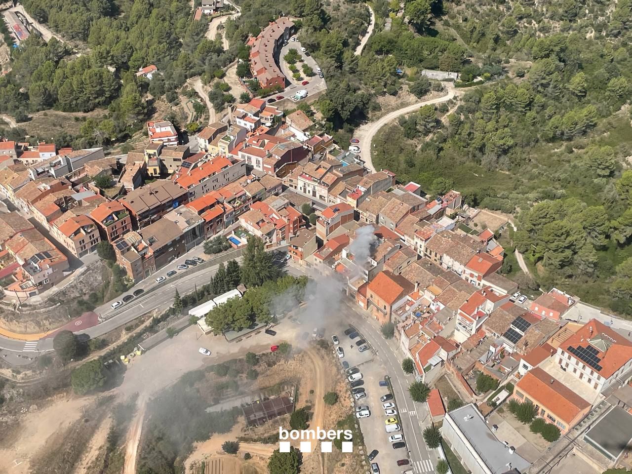 El incendio ha generado una gran columna de humo visible desde en todo el municipio, que Bombers de la Generalitat han podido captar en imágenes aéreas: