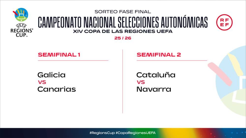 Aquest dilluns, 9 de febrer, s’ha celebrat a la sala Luís Aragonés de la RFEF a Las Rozas el sorteig per decidir els encreuaments de la fase final de la UEFA Regions Cup, que se celebrarà a partir aquest mes de febrer a l’Estadi Olímpic de Terrassa.