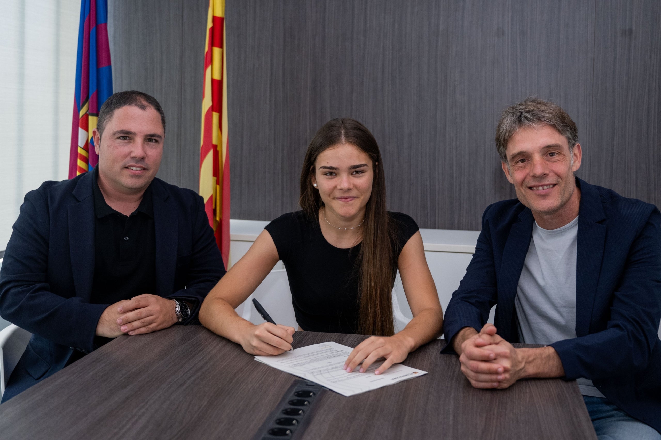 La jugadora de futbol de Terrassa Natalia Escot s’ha convertit en nova jugadora del FC Barcelona B Femení. Així ho ha donat a conèixer el club blaugrana aquest dimecres, 31 de juliol, a través d’un comunicat publicat a la seva compta d’X, antiga xarxa social coneguda com a Twitter. L’acte de fitxatge del contracte entre Escot i el FC Barcelona ha comptat amb la presència de Marc Vivés, director esportiu del club blaugrana, i de Jordi Ventura, coordinador del futbol formatiu.