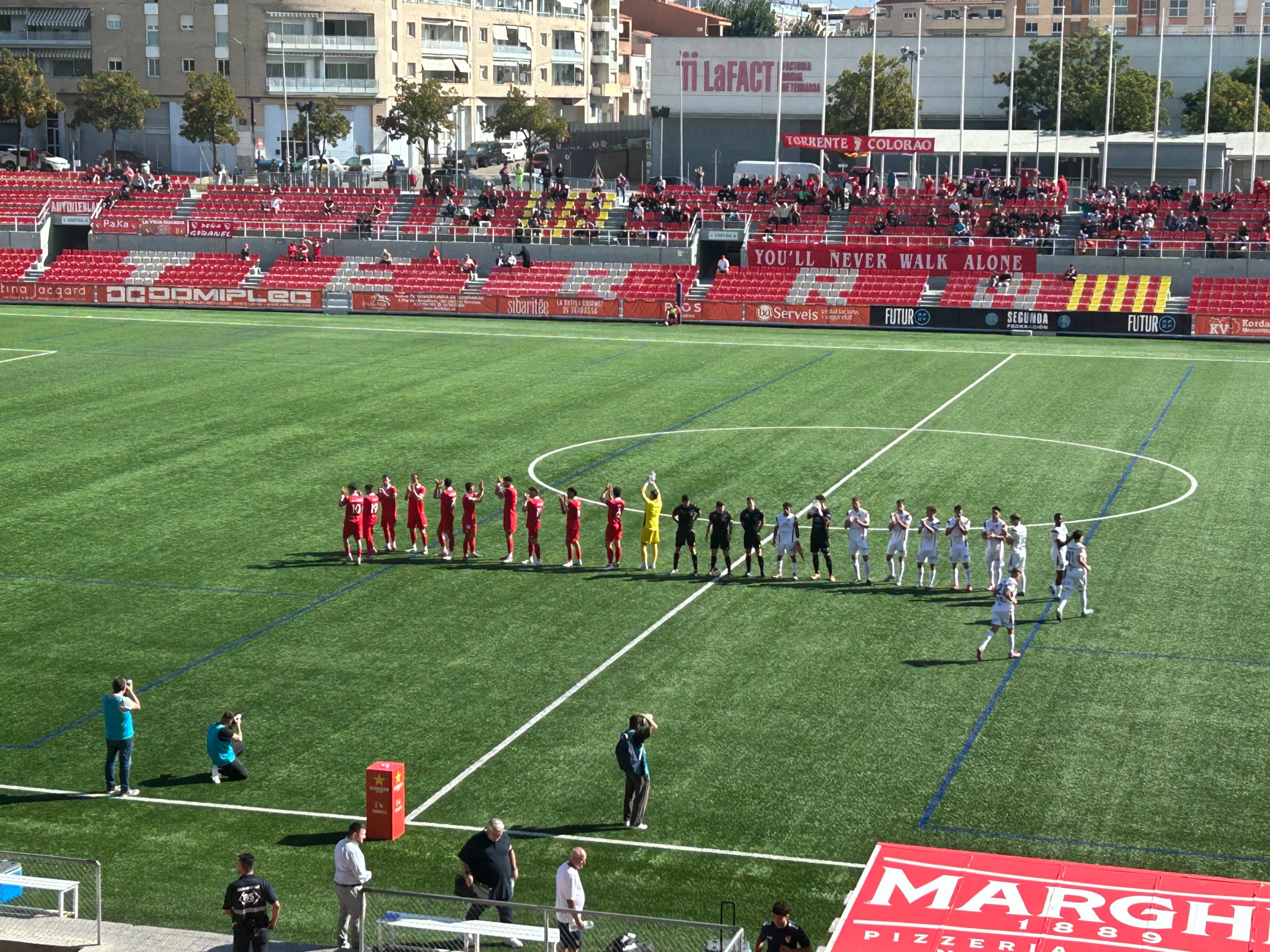 Terrassa FC: 1 Marcos, 6 Isma, 5 Schouten, 22 Beamonte, 18 Mario Domingo; 8 Ruymán, 14 Barrero; 19 Casti (Larrauri 66′), 10 Guti (Dirks 59′), 20 Sleegers (Josemi 78′), 16 Joel (Van den Heerik 78′).
