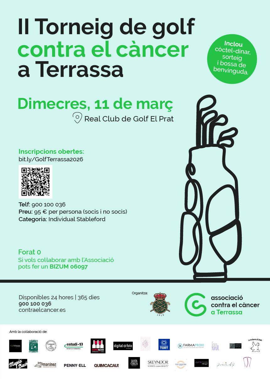 La ciutat de Terrassa acollirà un any més el Torneig Solidari de Golf amb l’objectiu de recaptar fons per a la recerca i l’acompanyament a persones amb càncer. L’esdeveniment, que serà de categoria Individual Stableford, tindrà lloc el pròxim dijous dia 11 de març a les instal·lacions del Real Club de Golf El Prat i té un preu d’inscripció de 95 euros.