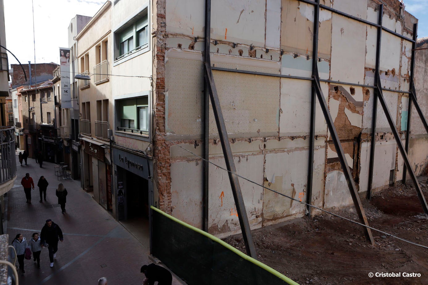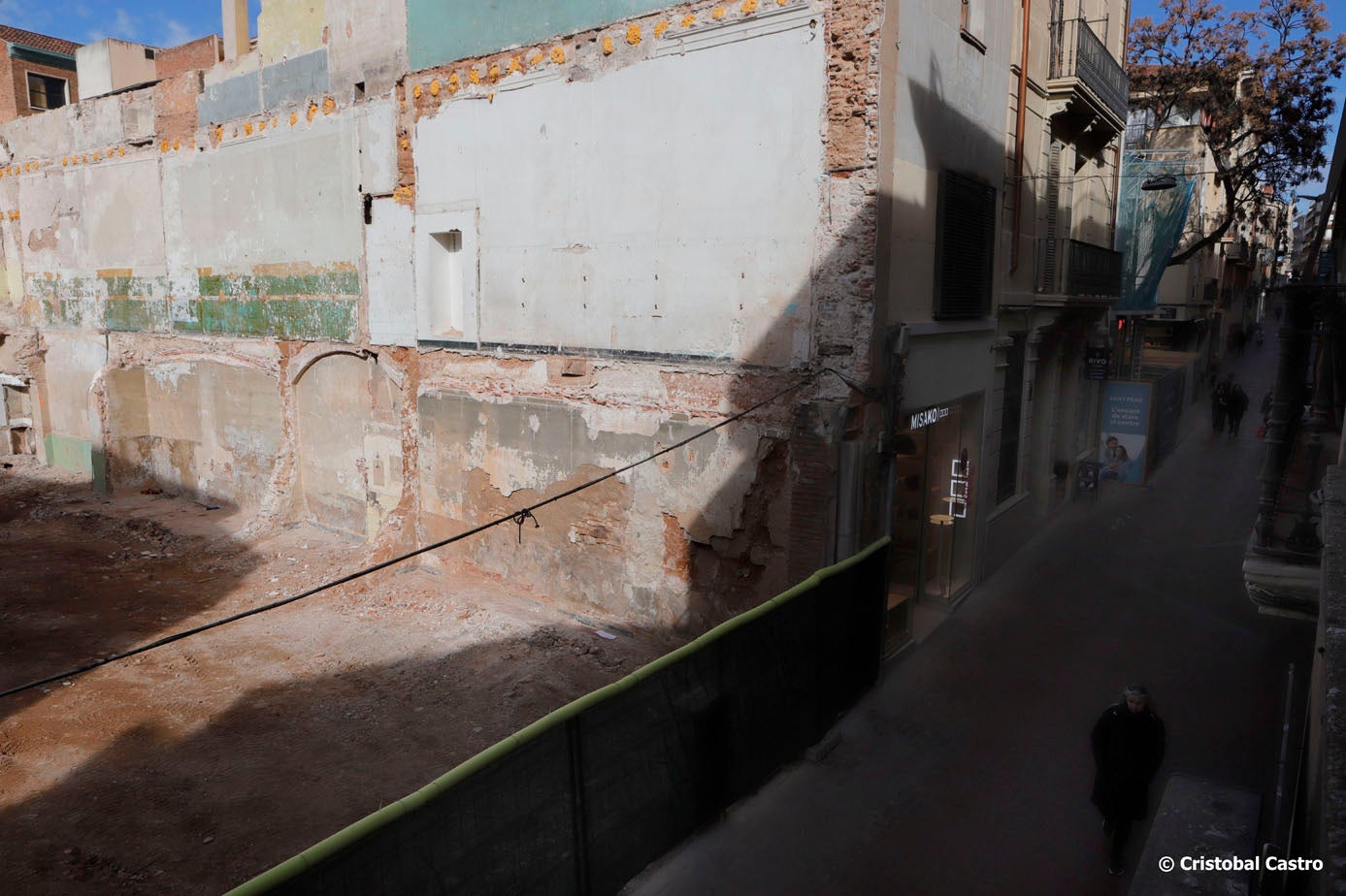 Un enderroc per fer pisos i obri un nou carrer. Treballs d’enderroc de les dues finques del carrer de Sant Pere 23-25. La desaparició d’aquests dos immobles permetrà executar el projecte d’urbanització previst en aquesta zona i canviar, així, la fesomia d’aquest eix central de vianants, amb una nova urbanització, ampliació de vialitat i zona residencial. El projecte preveu que, on actualment se situen aquests immobles, s’obri el nou vial per a vianants que connectarà el carrer de Sant Pere amb el Passatge de Tete Montoliu. Aquesta modificació millorar la connectivitat amb els equipaments,com el Teatre Alegria, la Nova Jazz Cava, la plaça de l’Ajuntament, la plaça Didó, l’Institut del Teatre, la Sala Muncunill, o el mateix edifici consistorial.