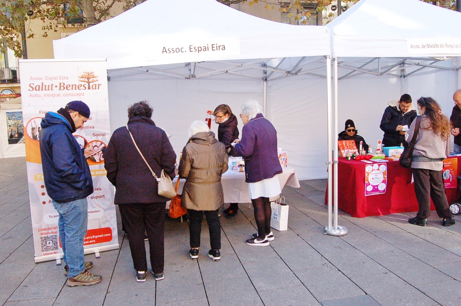 Aquest dissabte, la plaça Vella ha acollit la Fira d'Entitats de Salut, organitzada per l'Ajuntament de Terrassa. Enguany ha comptat amb la participació de 24 entitats de l’àmbit de la salut que han ofert informació sobre les malalties minoritàries, oncològiques, neurològiques, de salut mental, dol i drets, entre d'altres. Es tracta de la 9a edició i, com cada any, la jornada està adreçada a tots els públics. Al llarg del dia, hi ha hagut estands informatius d’entitats, així com diversos tallers i sessions de contacontes | Ramon Navarro