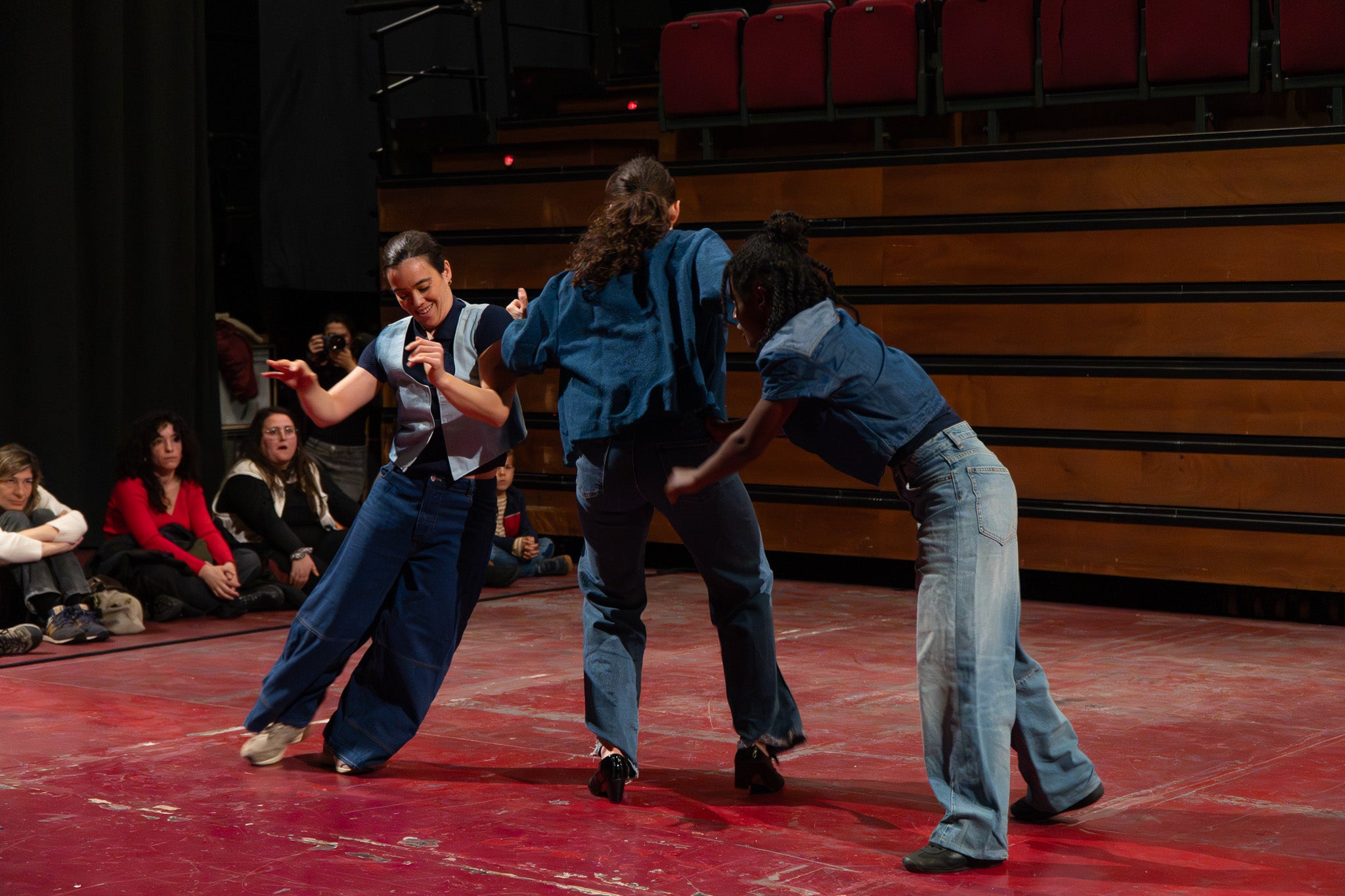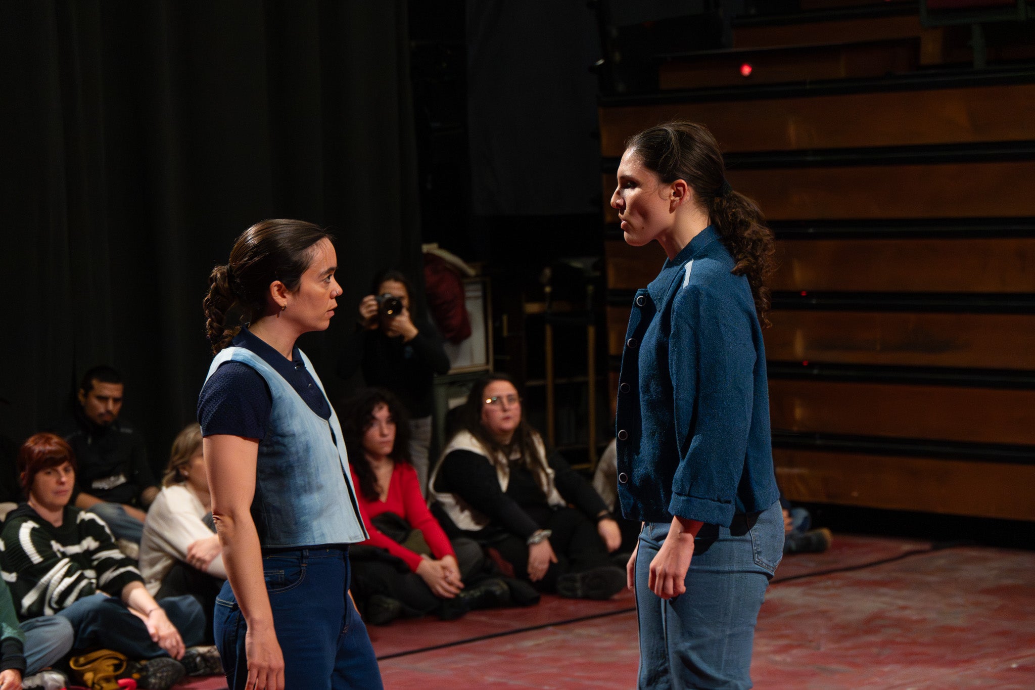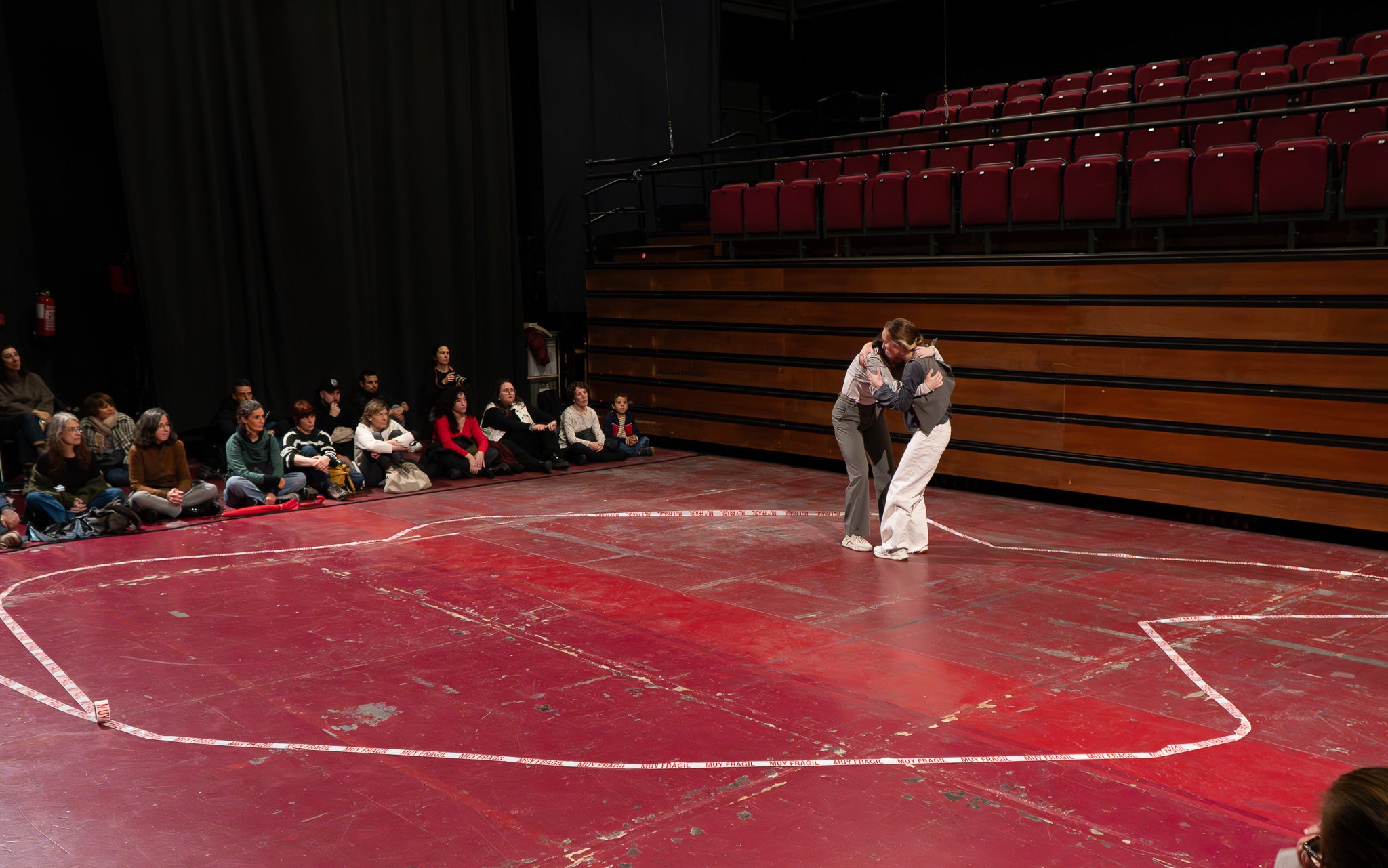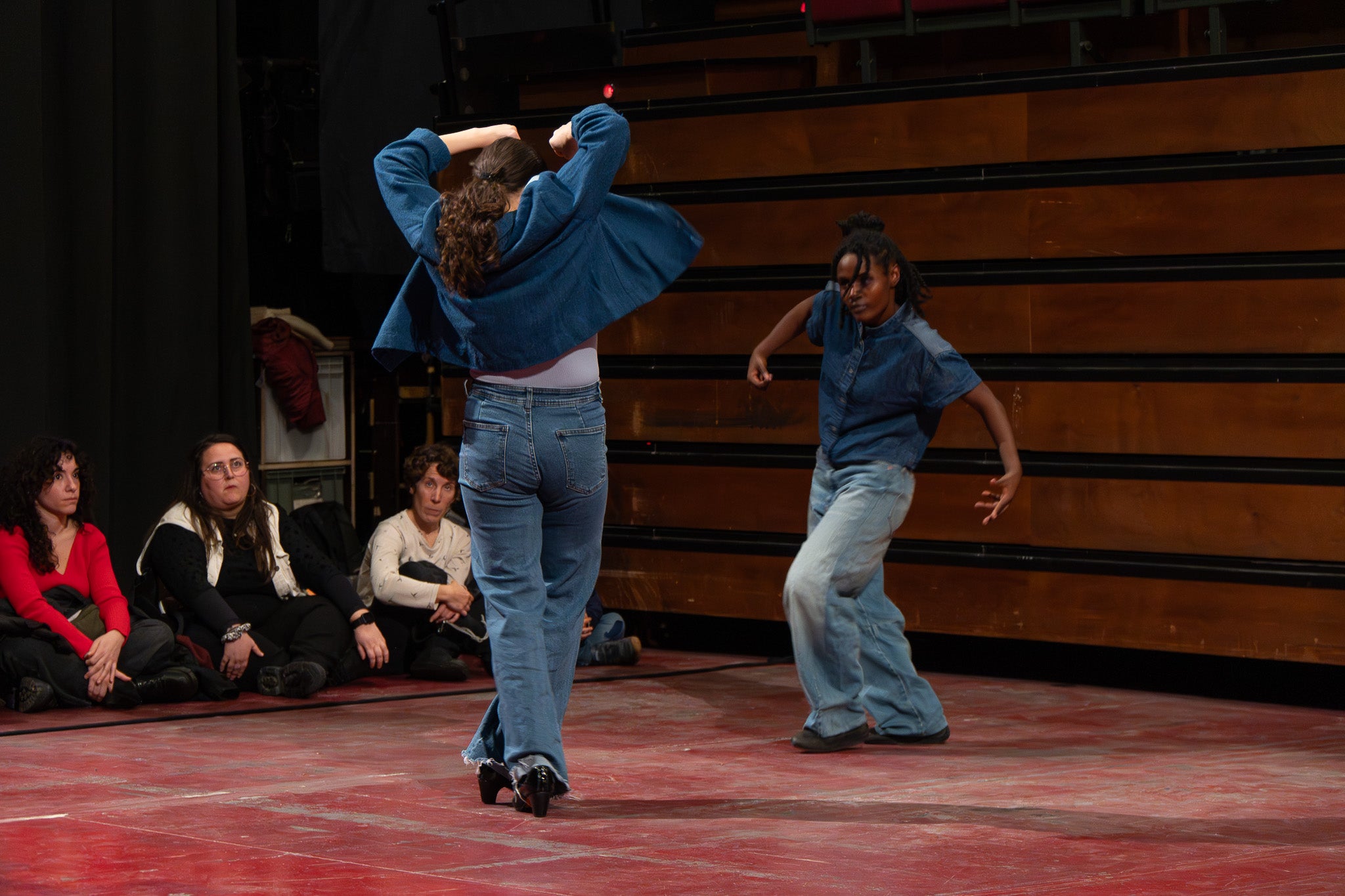 La pluja va obligar a traslladar la programació de Dansa Metropolitana prevista a l’aire lliure a un espai tancat, però això no va ser obstacle perquè el públic s’hi acostés. Va ser un doble espectacle amb “Pies de gallina”, a càrrec d'Ana F Melero i Luna Sánchez, i “A medio camino”, d’Angés Sales i Héctor Plaza amb tres dones com a protagonistes | Jan Romero