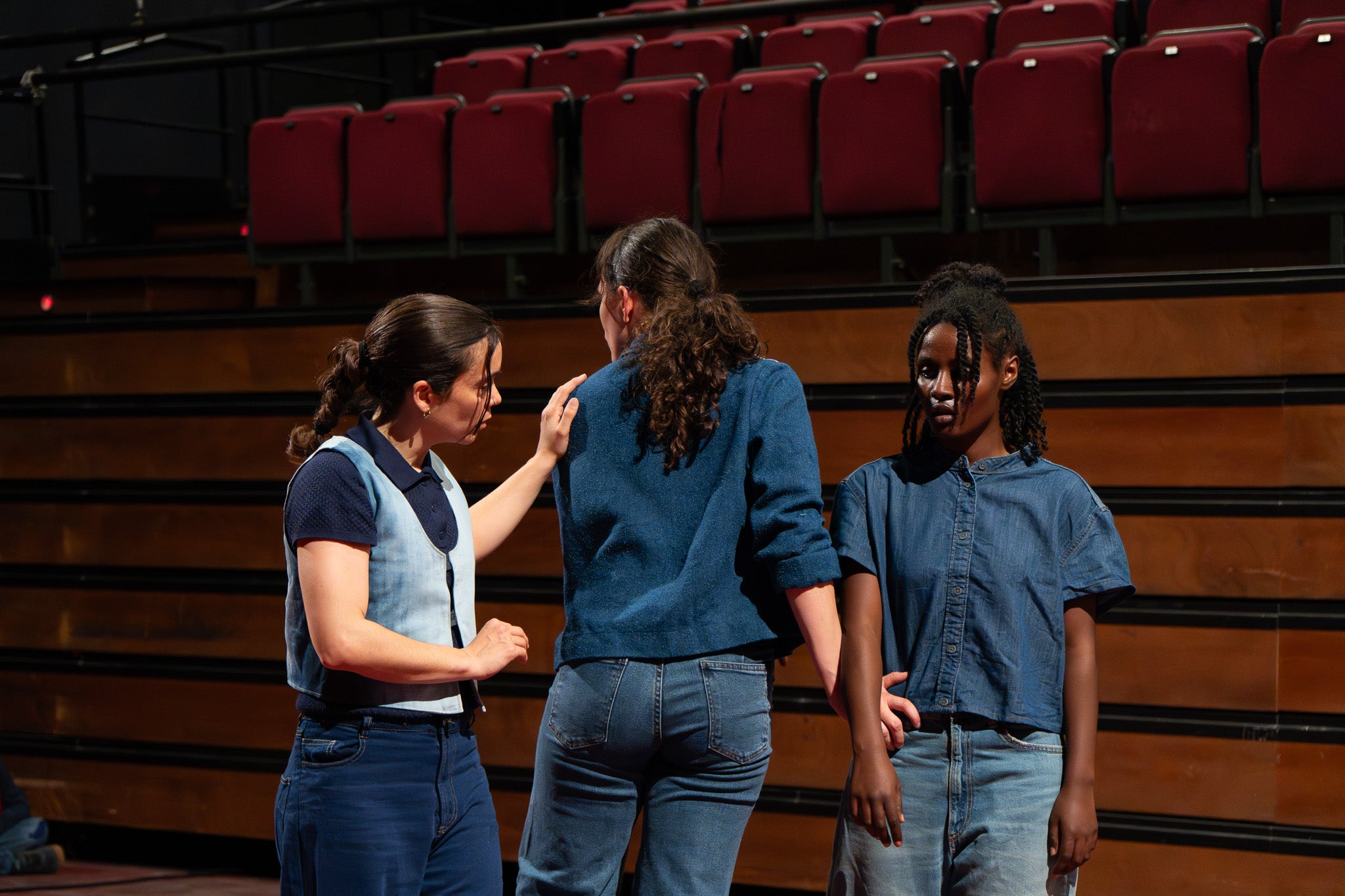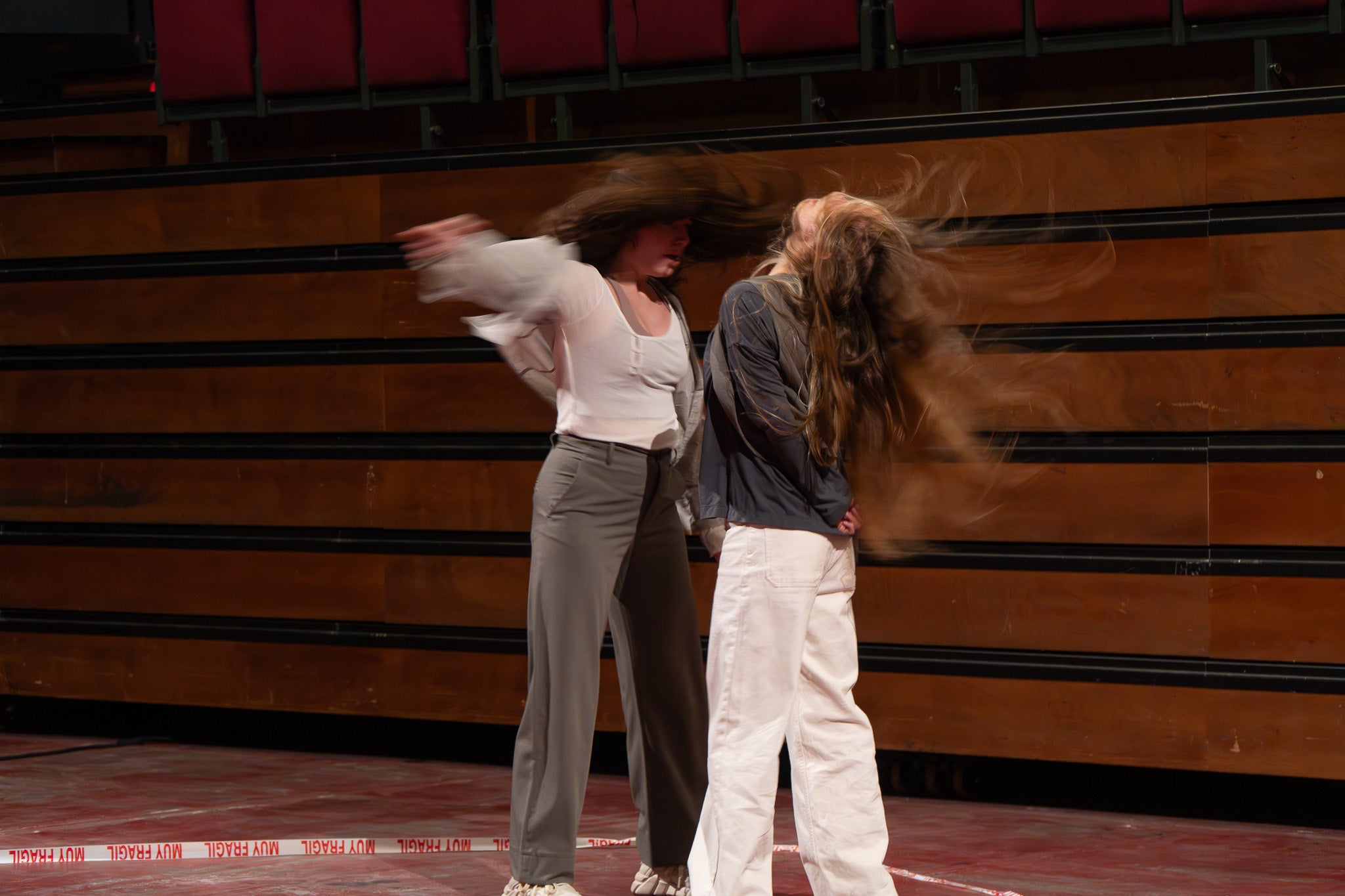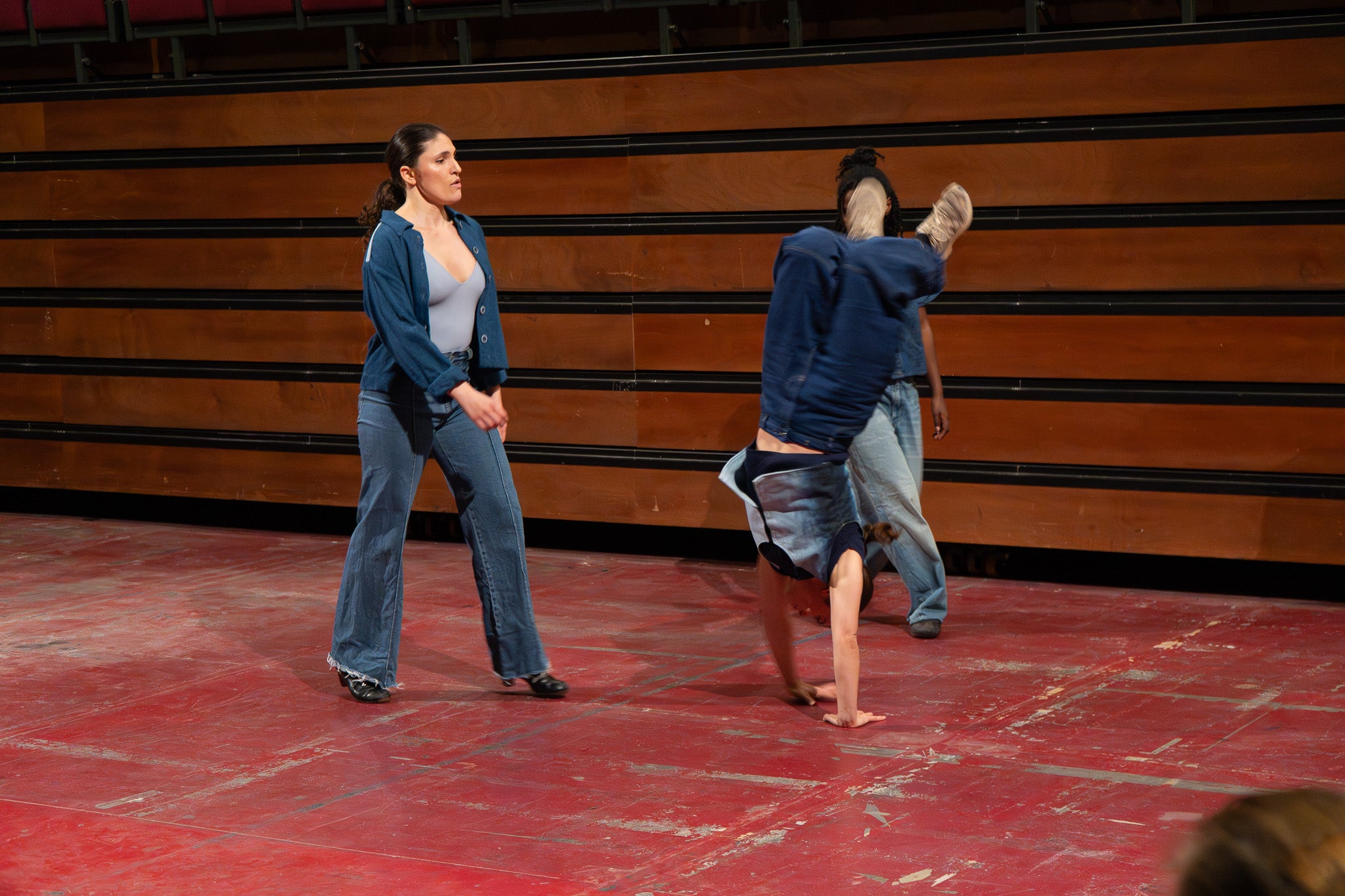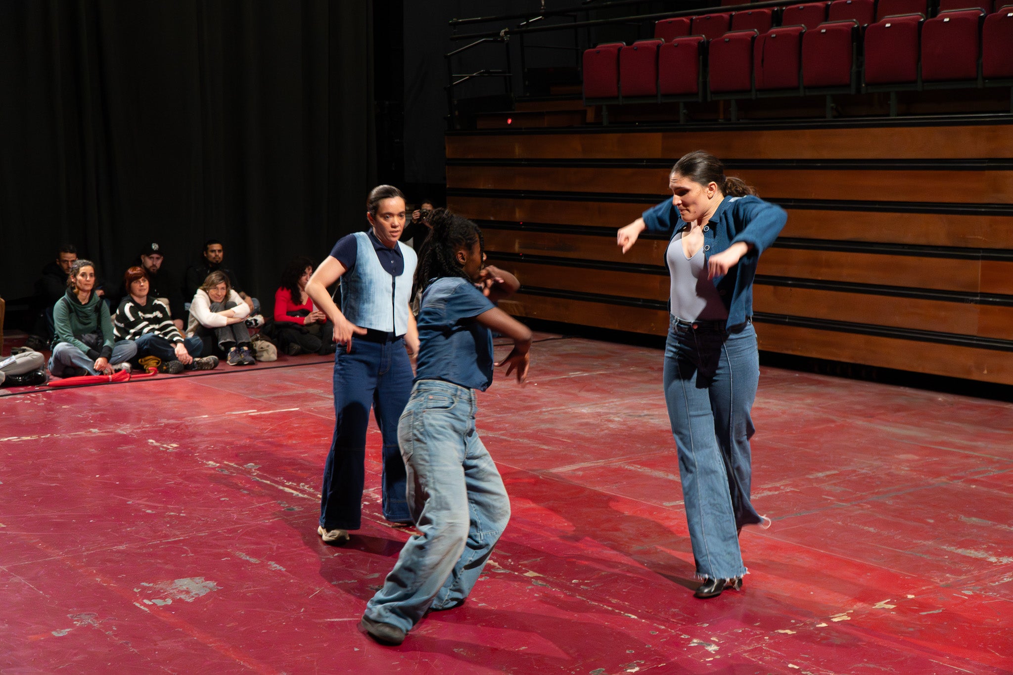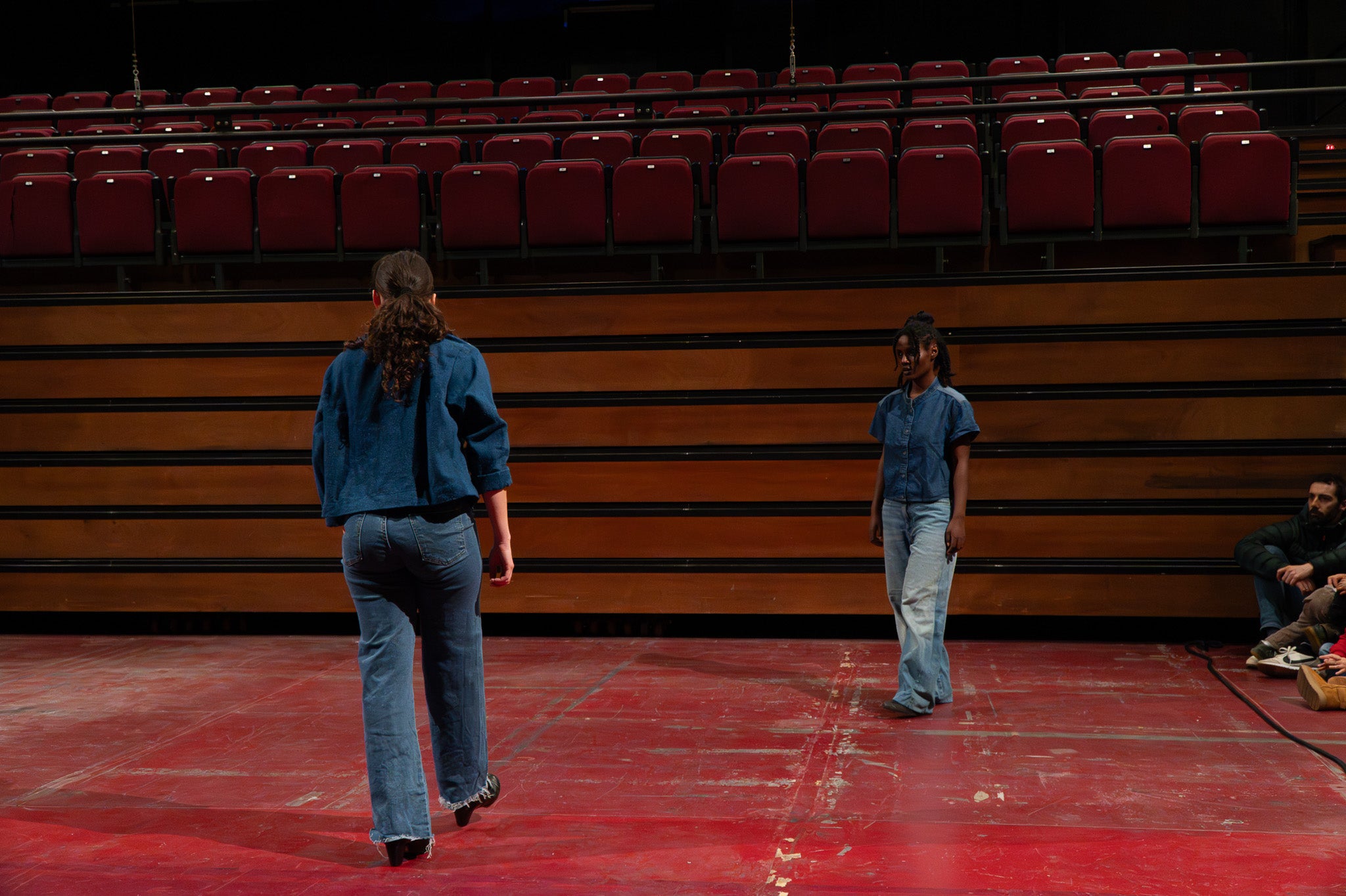 La pluja va obligar a traslladar la programació de Dansa Metropolitana prevista a l’aire lliure a un espai tancat, però això no va ser obstacle perquè el públic s’hi acostés. Va ser un doble espectacle amb “Pies de gallina”, a càrrec d'Ana F Melero i Luna Sánchez, i “A medio camino”, d’Angés Sales i Héctor Plaza amb tres dones com a protagonistes | Jan Romero
