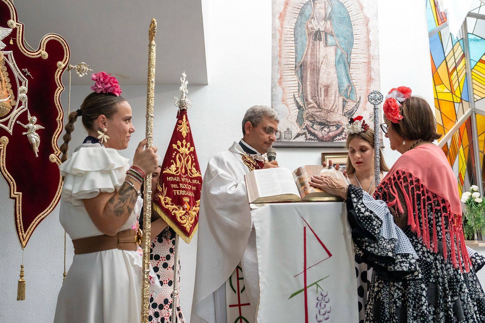 Aquest cap de setmana ha tingut lloc el tradicional Cambio de Vara de la Hermandad Del Rocío de Terrassa. L’acte, ple de simbolisme i emoció, ha servit per fer el relleu entre la Gianina Freixa i la Montse Valero com a nova Hermana Mayor, acompanyat per la missa solemne i les galejades dels Bandolers Terrassa | Cedida