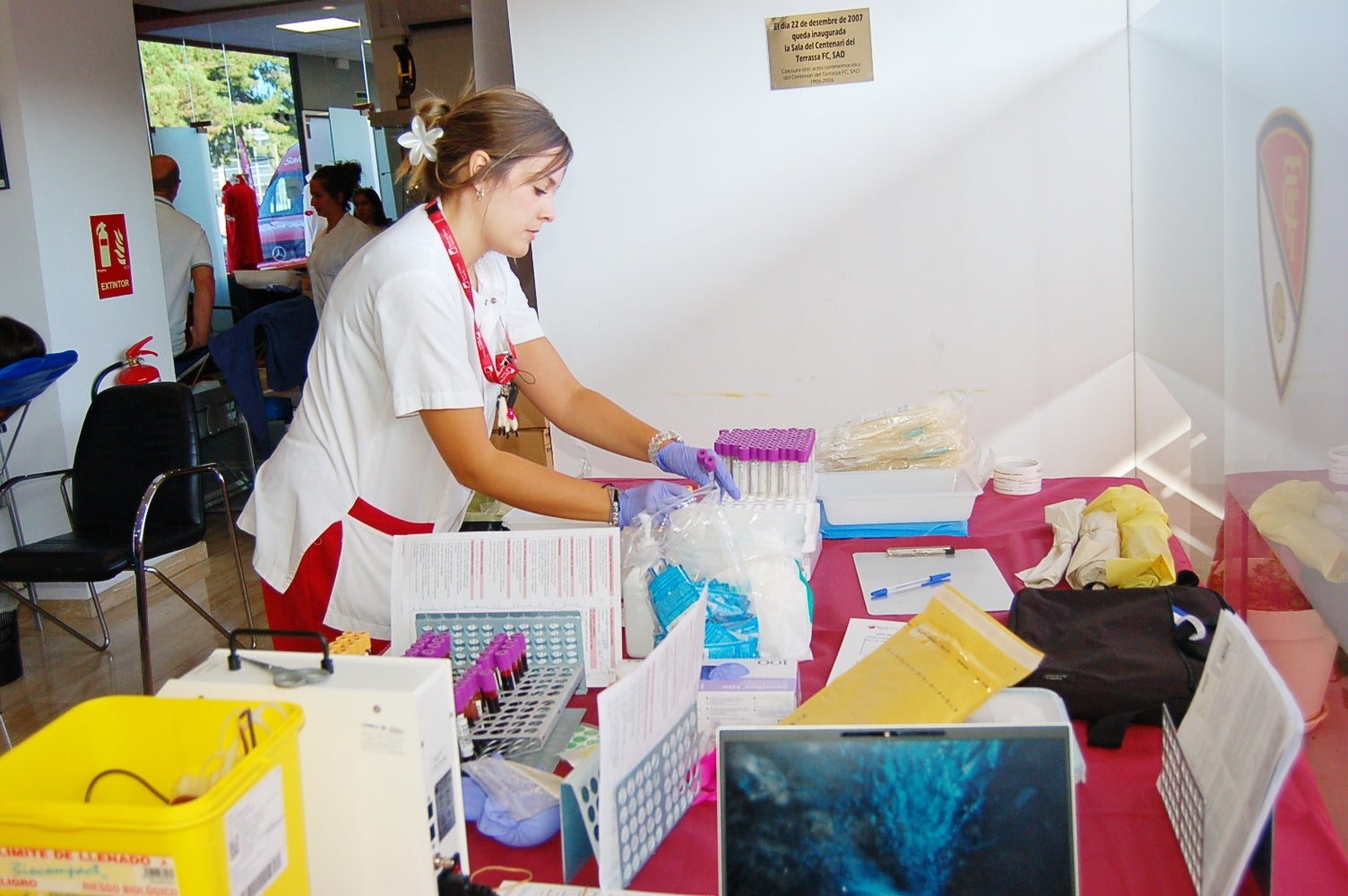 L'Estadi Olímpic de Terrassa s'ha convertit aquest dissabte en una banc de sang improvisat. La campanya ha volgut d'aquesta manera cridar l'atenció dels terrassencs i aconseguir incrementar el nombre de donacions, que esperaven que superessin les 200 | Ramon Navarro