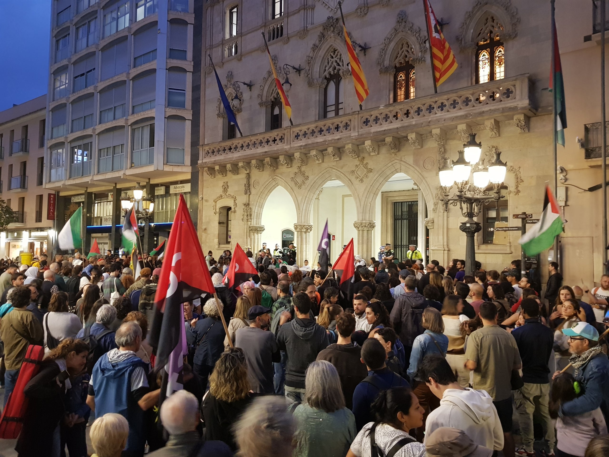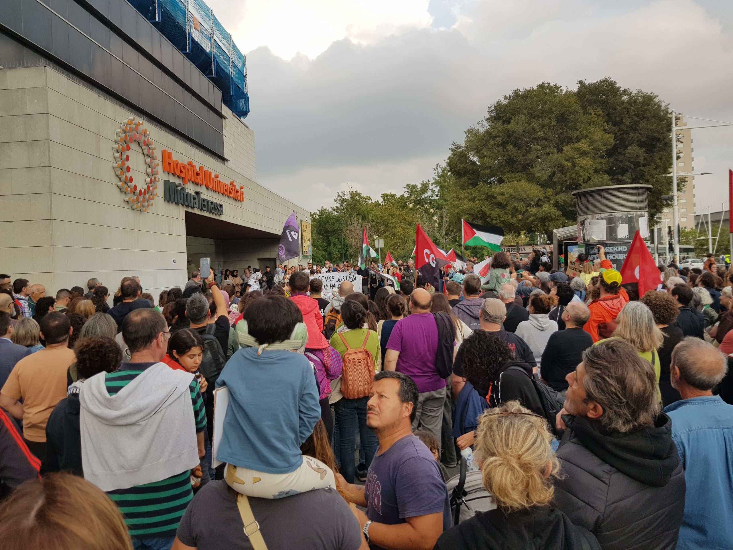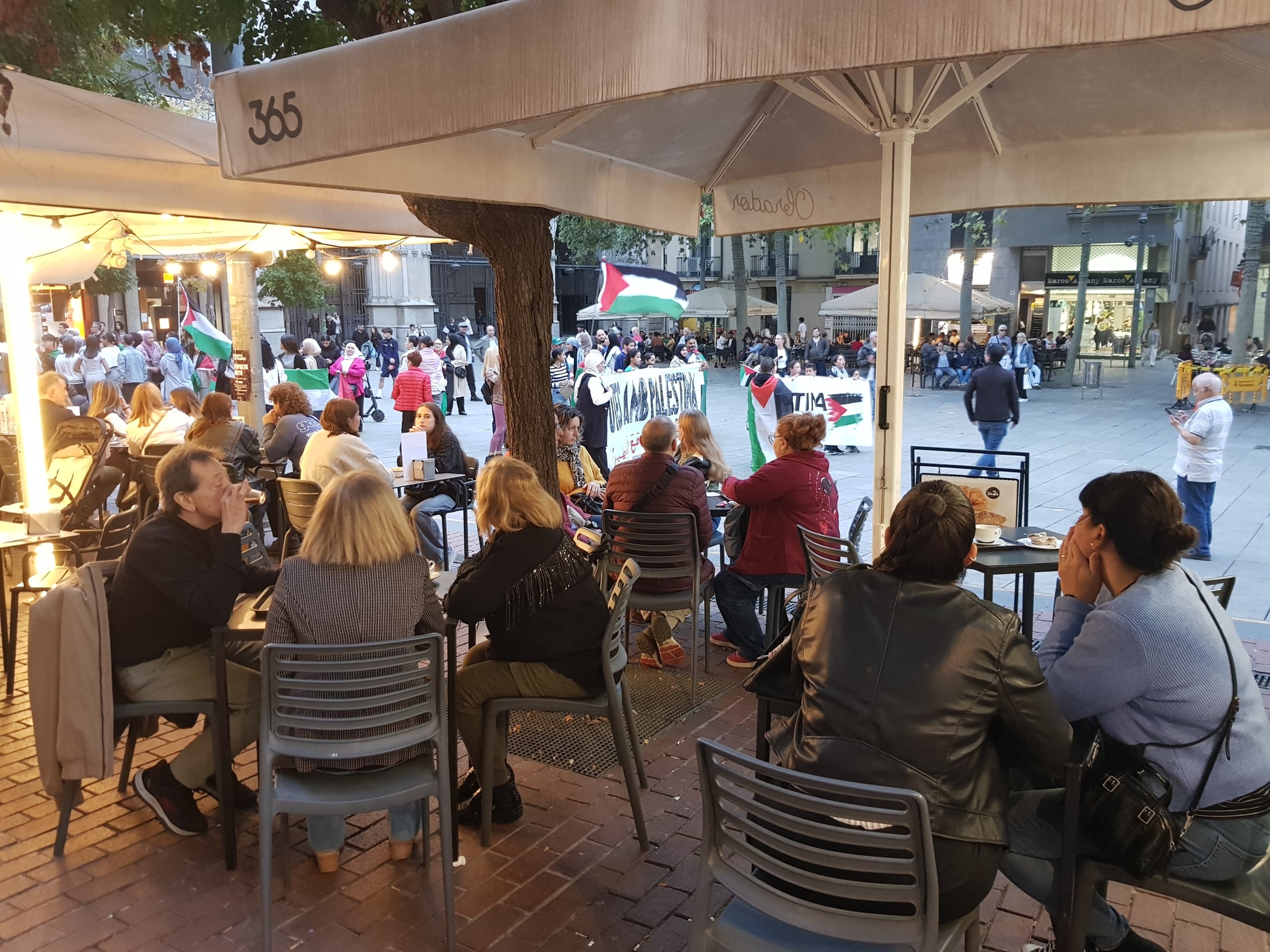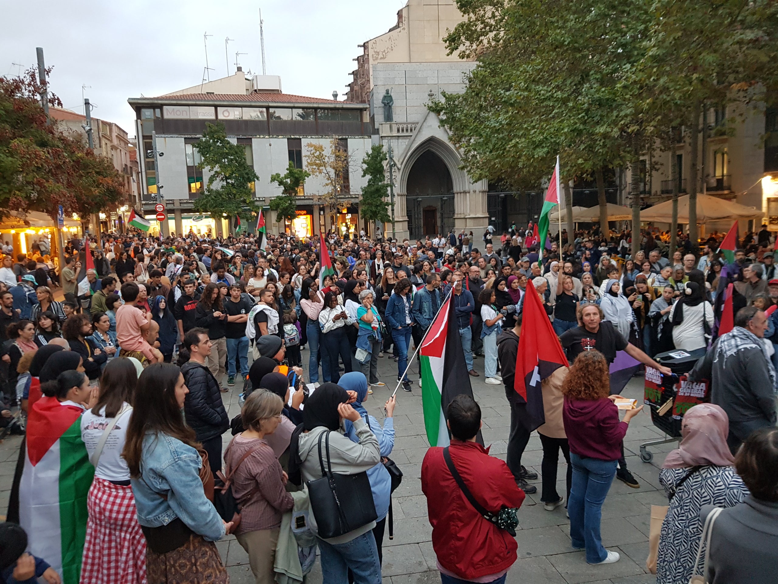 Terrassa s’ha adherit a la Vaga General per al poble palestí amb una manifestació que ha recorregut els carrers del Centre de la ciutat. La convocatòria, feta des Terrassa amb Palestina i sindicats com COS i CGT s’ha iniciat des de davant de MútuaTerrassa, on s’ha volgut denunciar amb una performance i un manifest “la vulneració del dret internacional per part d’Israel” i al mateix temps “homenatjar el personal sanitari de Gaza” que ha estat salvant vides. La manifestació ha transcorregut amb càntics a favor d’una Palestina lliure i d’un boicot a Israel. Amb algunes aturades per llegir testimonis i manifest, i amb intents de tancar comerços que no han prosperat, la comitiva ha arribat fins al Raval, on s’ha fet l’acte de cloenda | Lluïsa Tarrida