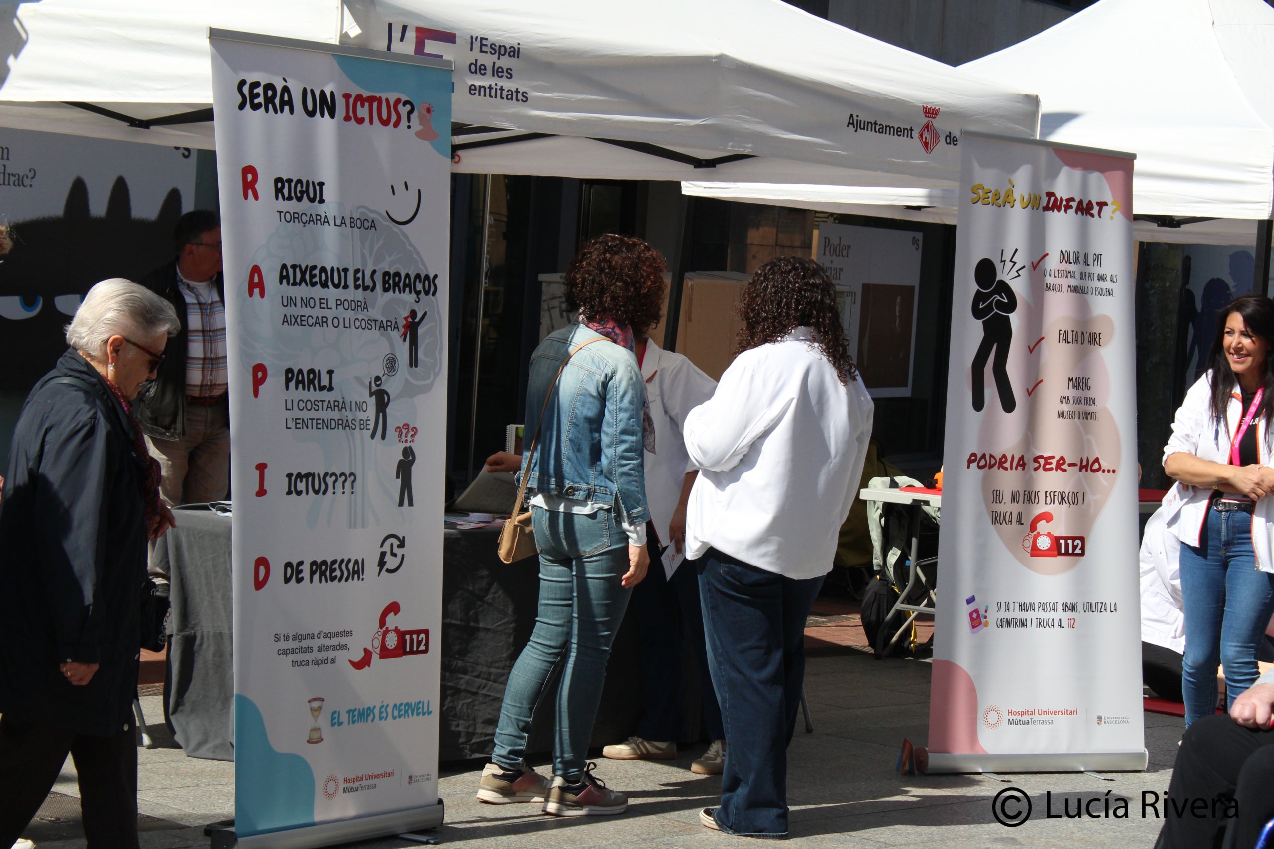 Aquest dimecres 14, al matí, el Raval de Montserrat ha acollit una carpa informativa sobre les malalties vasculars -com l’Ictus o l’Infart Agut de Miocardi- i la reanimació cardiopulmonar, juntament amb la maniobra de Hemlich. Les taules han estat ateses per professionals d’infermeria de l’entitat, i forma part dels actes celebrats aquesta setmana des de l’Hospital Universitari MútuaTerrassa amb motiu del Dia Internacional de la Infermeria | Lucia Rivera