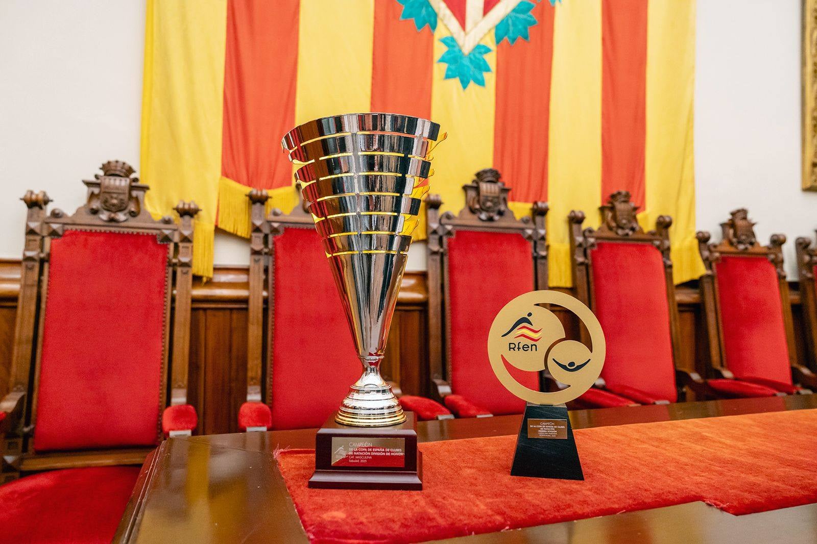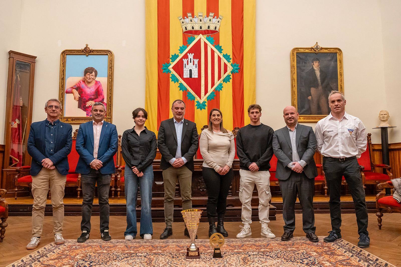 El Saló de Sessions de l'Ajuntament de Terrassa ha donat la benvinguda als nedadors i nedadores del Club Natació Terrassa participants al Campionat d'Europa, l'equip de natació masculí del CNT campió de la Copa d'Espanya de Divisió d'Honor i l'equip de natació femení del CNT guanyador de la Copa d'Espanya de clubs de Primera Divisió. Després de la rebuda, l'alcalde i els nedadors i nedadores han sortit al balcó de l'edifici consistorial per saludar l'afició del Club Natació Terrassa | Cedida