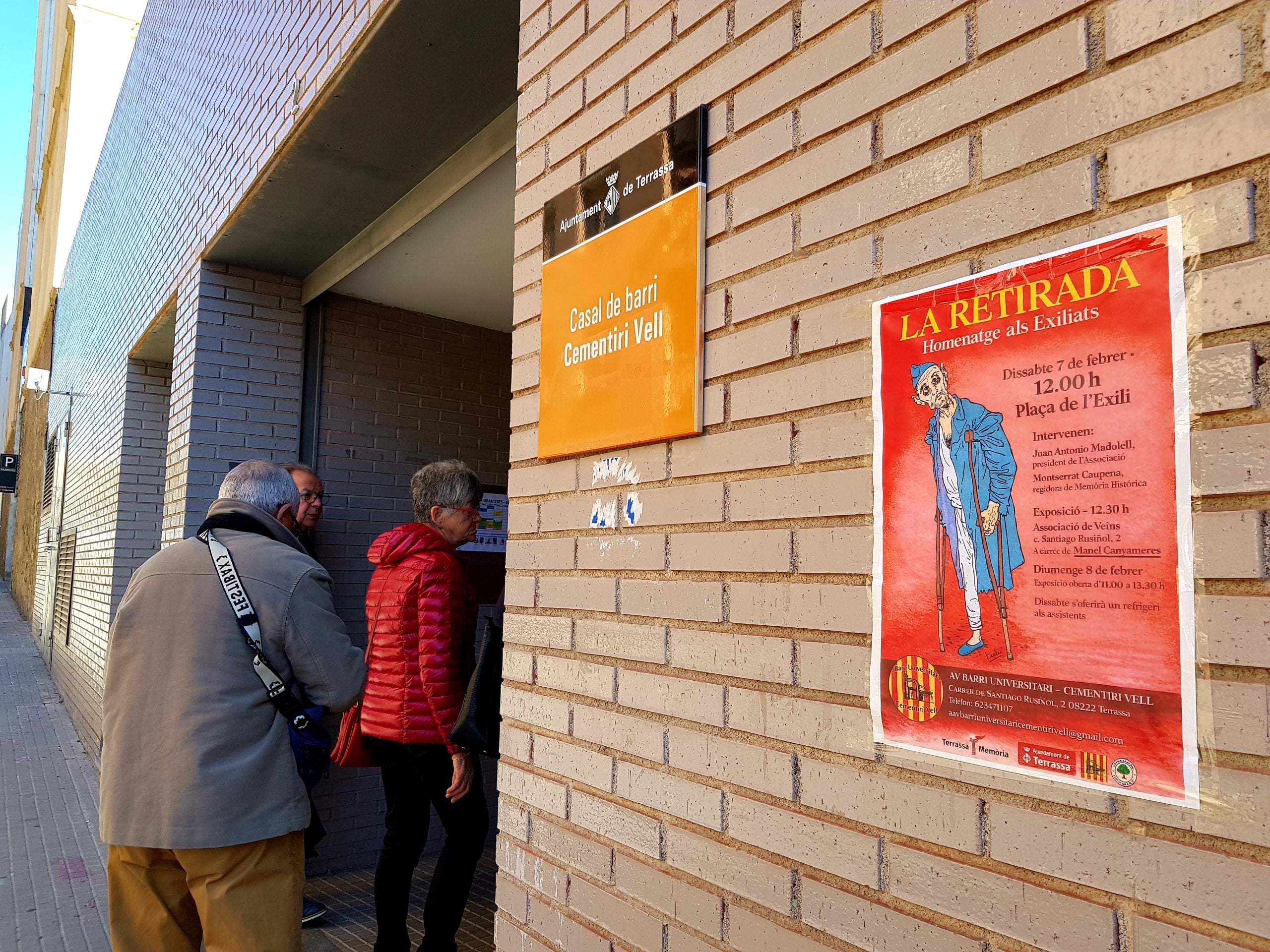 Aquest dissabte ha tingut lloc l’acte de commemoració del Dia Nacional de l’Exili i la Deportació que se celebra anualment el 5 de febrer, en memòria dels exilis i desplaçaments forçosos que es van produir aquest dia en 1939. Organitzat per l’Associació Veïnal Cementiri Vell, ha comptat amb la interpretació musical de “Corrandes d’Exili”, a càrrec de Mariona Pallach. Tot seguit, el president de l’AV, Juan Antonio Madolell, ha fet un breu repàs de la situació en què es van veure immersos milers de persones republicanes que van haver de fugir. Per la seva part, la regidora Montserrat Caupena, ha recordat la necessitat de “fer memòria des del territori”, més encara en un moment on “el discurs d’odi ha guanyat pes, també dins de les institucions”. La jornada ha finalitzat al local de l’entitat on Manel Cañameres ha parlat sobre la figura de Josep Bartolí i altres exiliats terrassencs, i s’ha fet una visita a l’exposició dedicada a l’exili | Lluïsa Tarrida