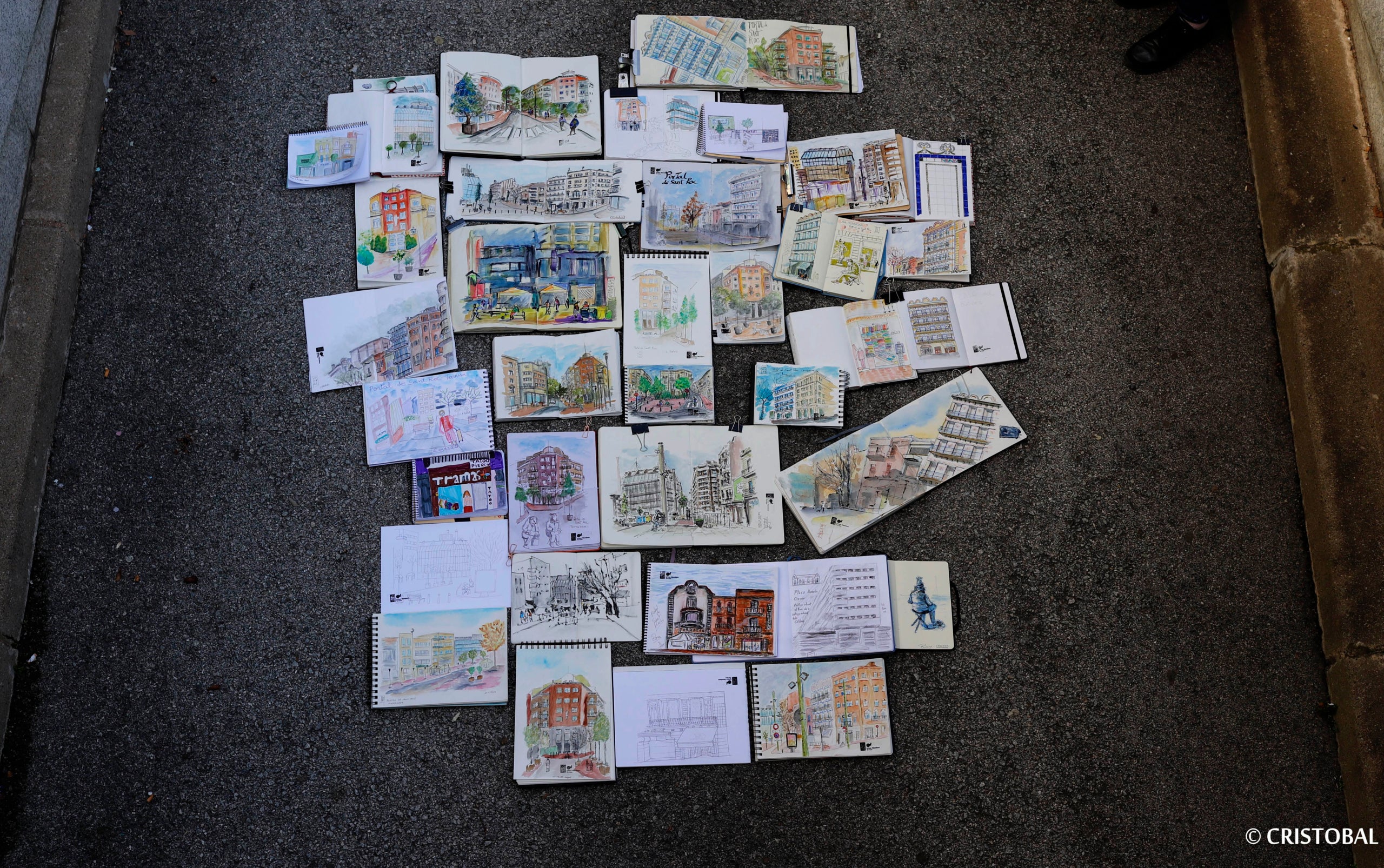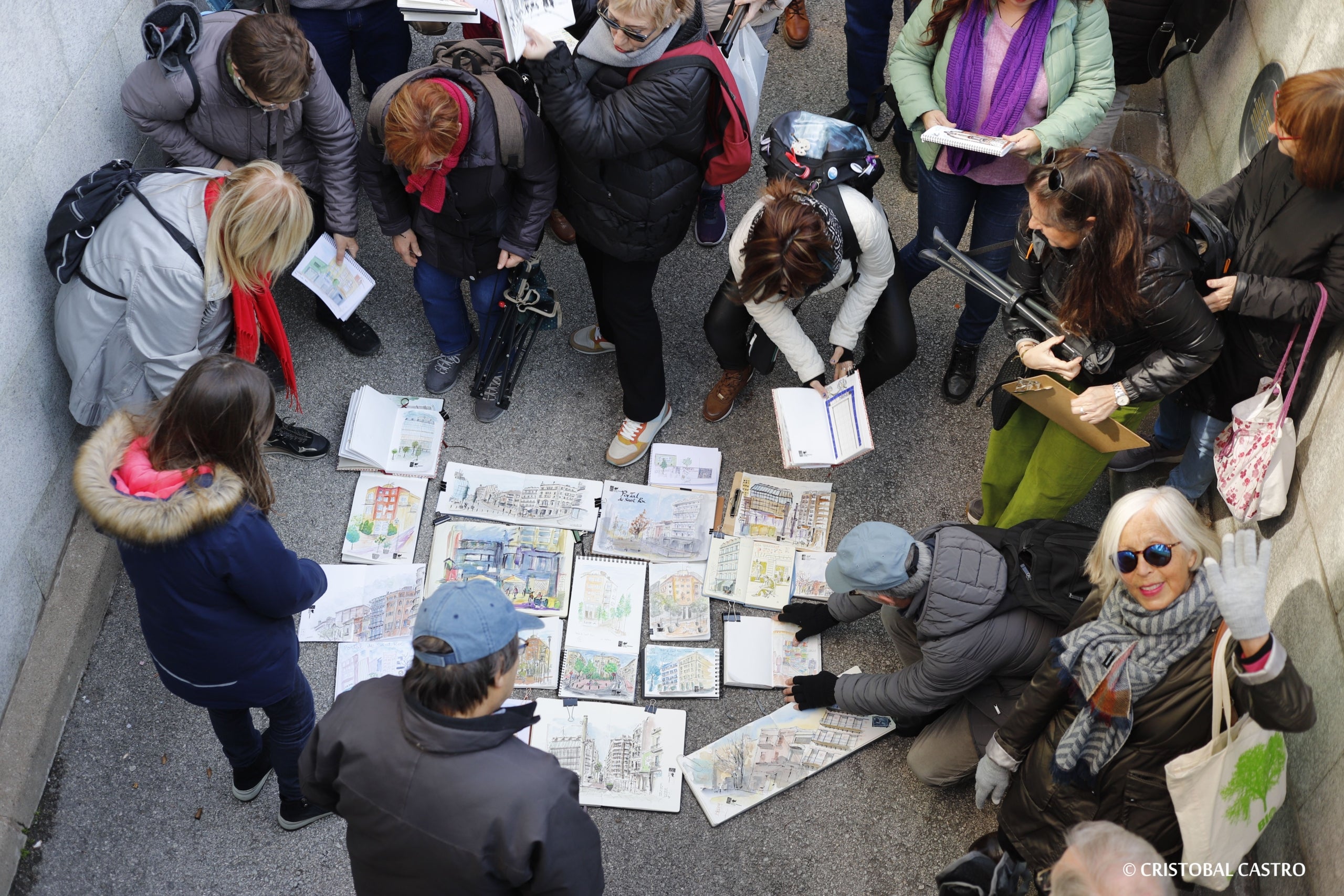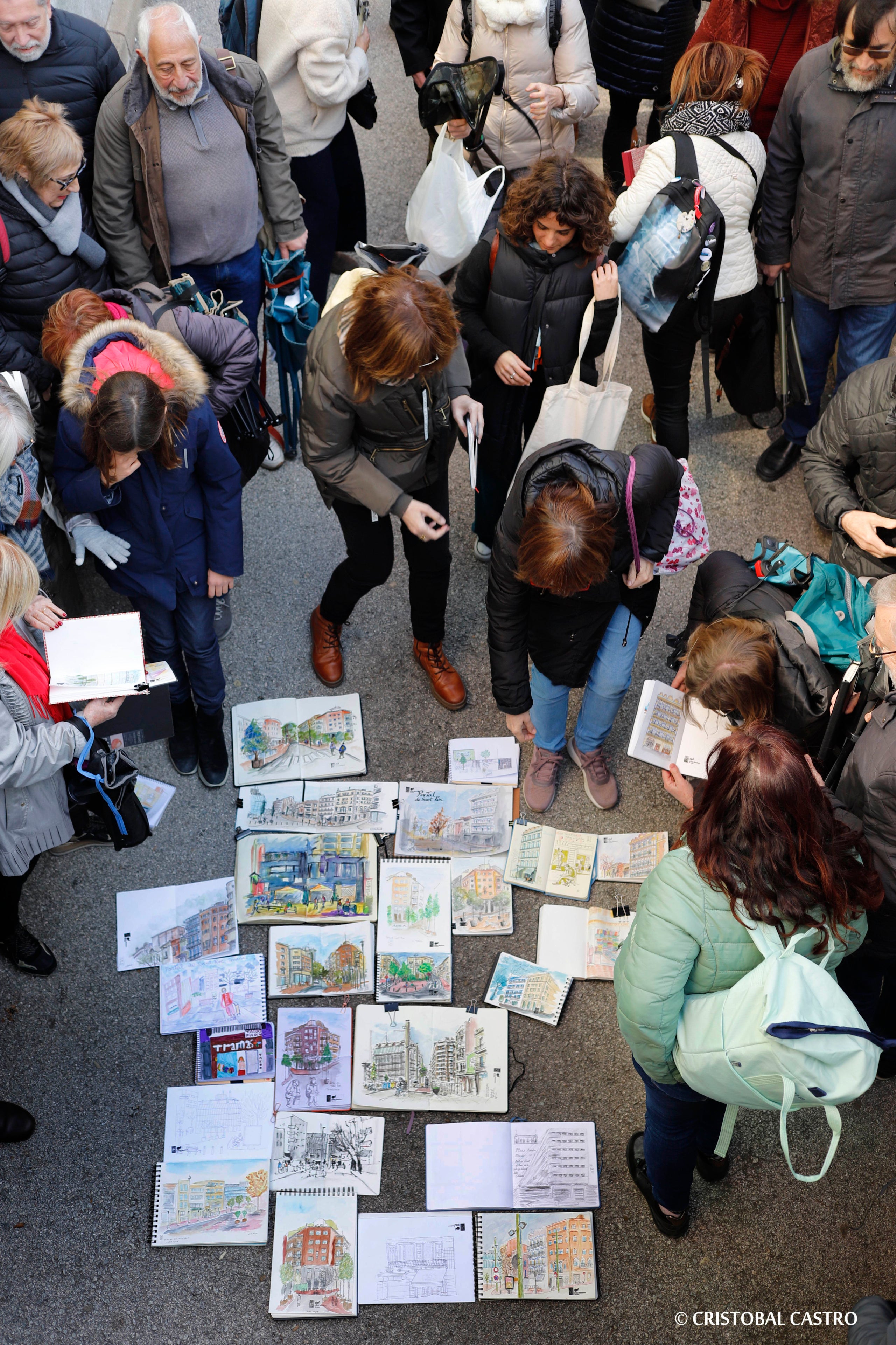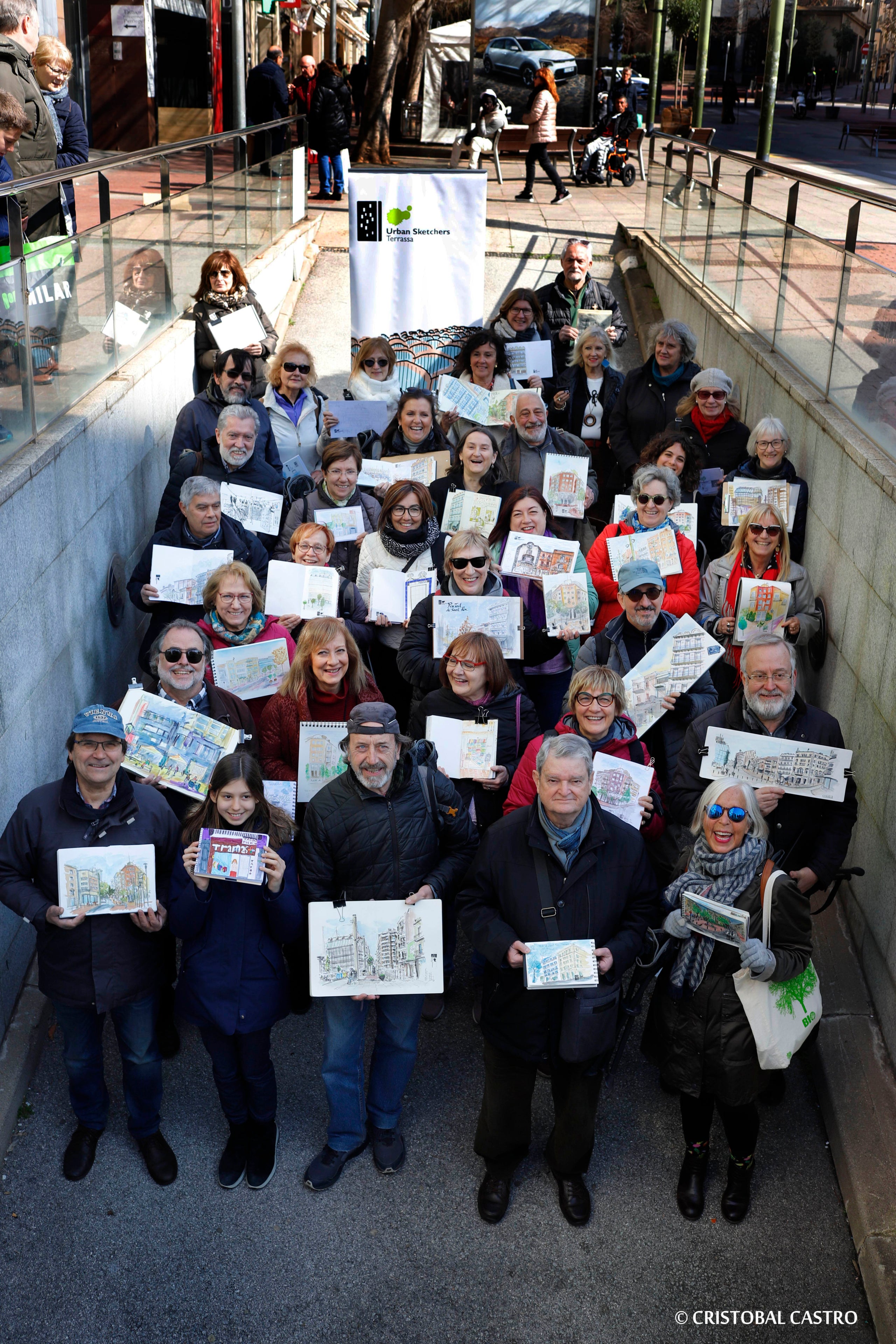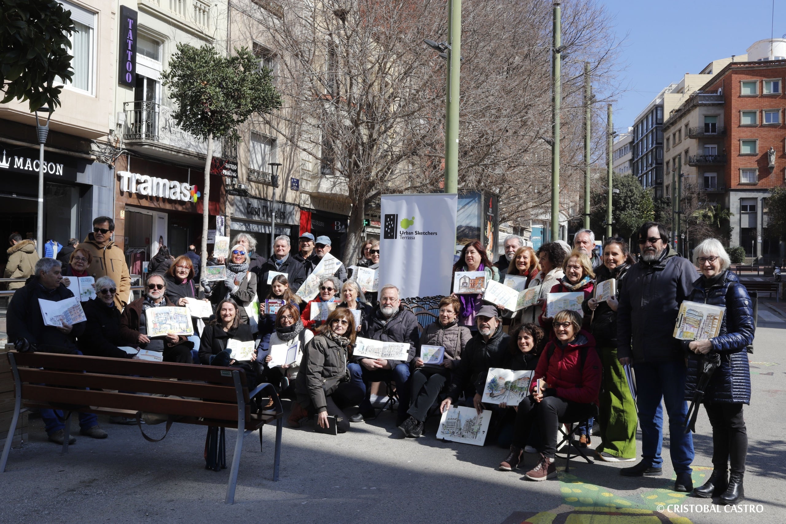 Matí de dissabte de dibuix a la Trobada de USK Terrassa. Des de l'entitat, en aquesta nova sortida s'ha decidit anar a dibuixar a l'espai del Portal de Sant Roc i a la plaça d'Anselm Clavé | Cristóbal Castro