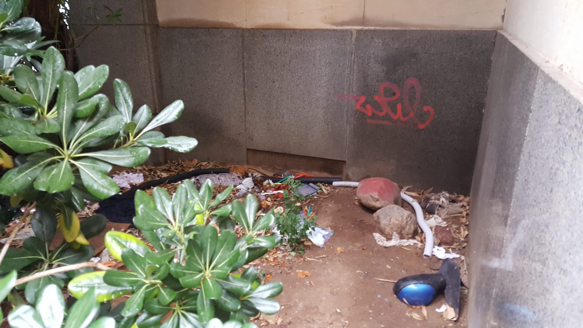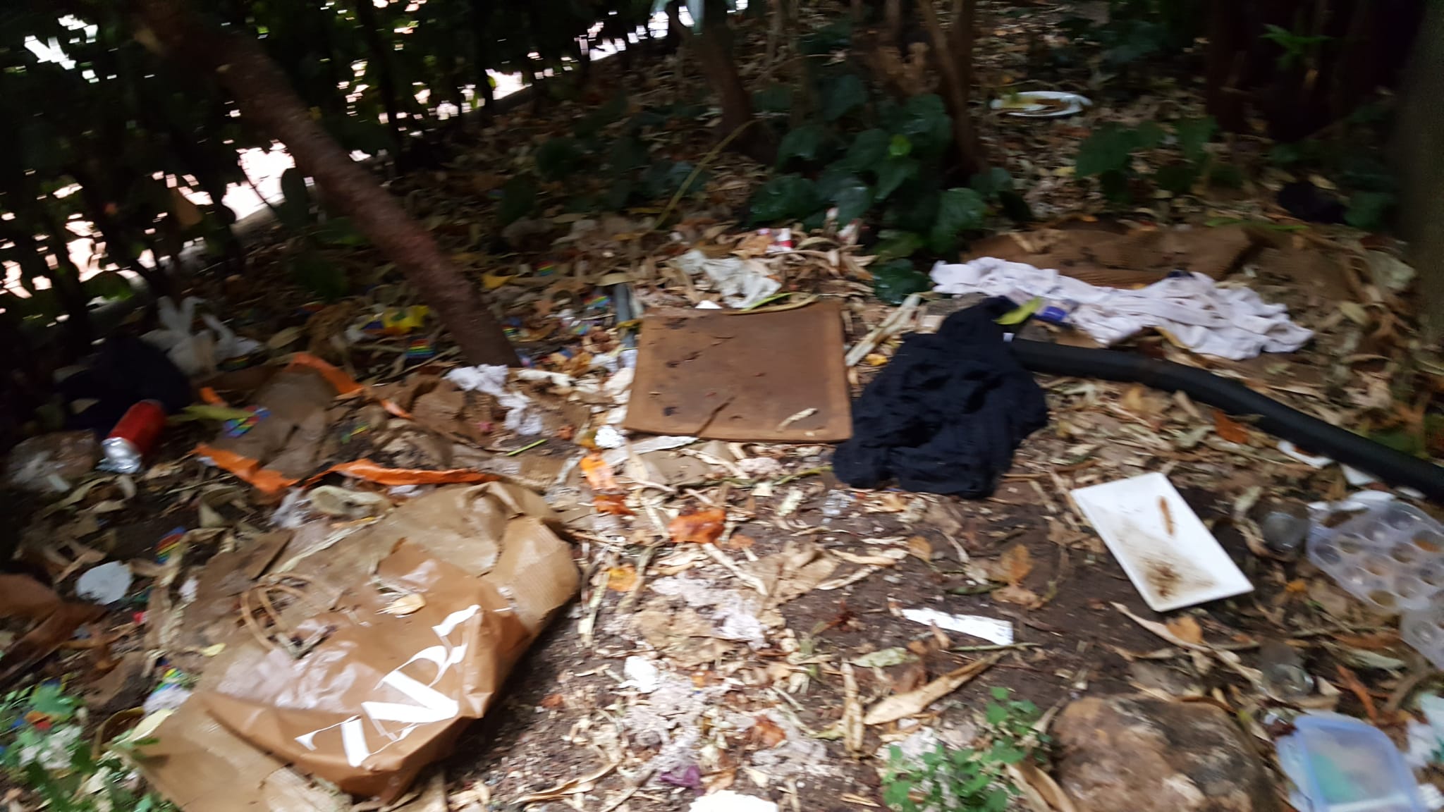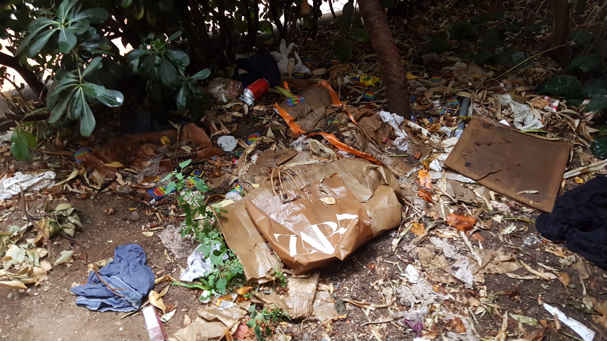 Un niu de merda en ple Centre de Terrassa. En un racó mig amagat al final del carrer del Vall amb Portal de Sant Roc hi trobem un espai rere un gran arbust, que passa sovint desapercebut. Justament per això s'ha convertit en un lloc ideal per abocar-hi tot tipus de porqueria. Des de bosses, papers, plàstic, roba o fins i tot el cadàver d'un animal. Sembla mentida la quantitat de brutícia que ha acumulat per ser que no és pas un lloc de reunió ni convida a estar-s'hi | Cristóbal Castro