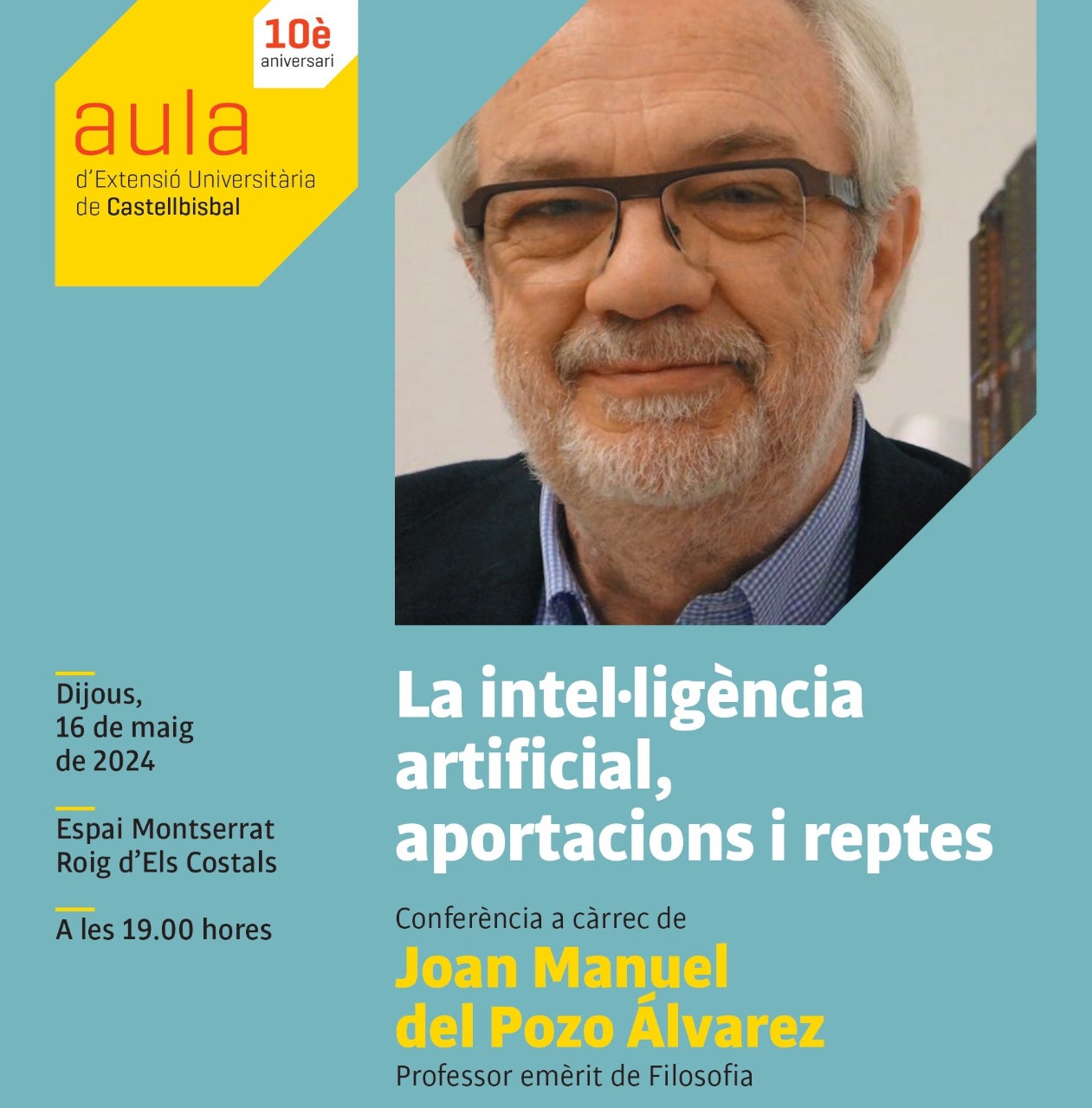 Sobre aquesta temàtica anirà la pròxima conferència al Centre Cultural Els Costals de dijous, 16 de maig. L’encarregat de la xerrada serà Juan Manuel del Pozo Álvarez, professor emèrit de Filosofia, qui parlarà sobre quines aportacions i reptes ens planteja la intel·ligència artificial i convidarà els assistents a reflexionar sobre aquest tema.