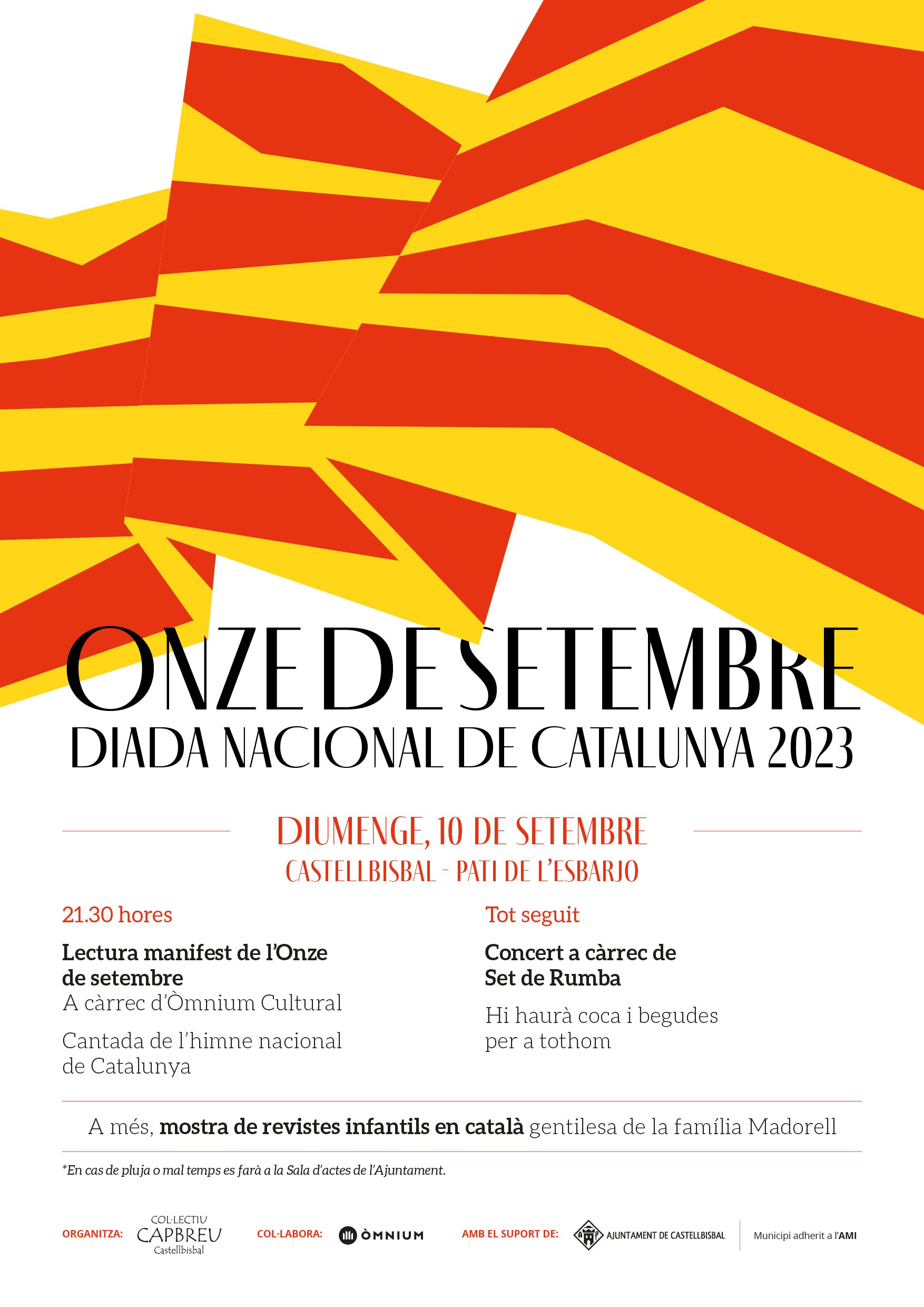 Amb l’11 de setembre a tocar, l’Ajuntament de Castellbisbal ha donat a conèixer els actes que es realitzaran durant la celebració de la Diada Nacional de Catalunya. A continuació us explicarem quina és l’agenda d’enguany el diumenge 10 i dilluns 11 de setembre per a la diada: