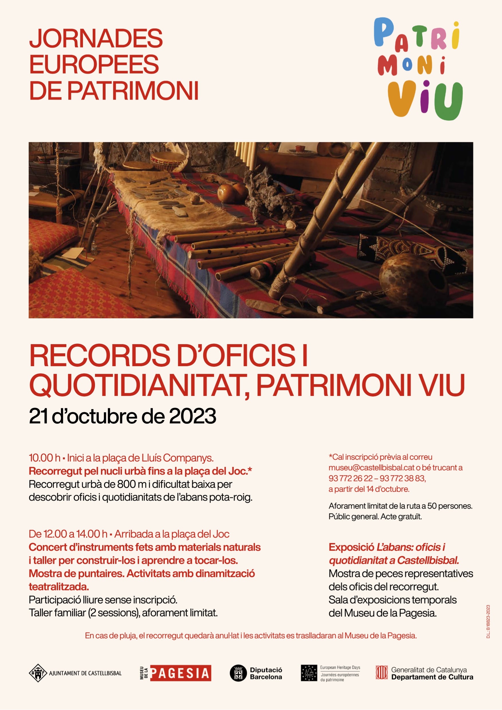 Durant tot el matí del 21 d’octubre, a la sala d’exposicions temporals del Museu de la Pagesia es podrà visitar l’exposició “L’abans: ofici i quotidianitat a Castellbisbal”. Aquesta exposició, emmarcada en les Jornades Europees de Patrimoni, mostrarà peces representatives d’oficis relacionats amb la ruta de records d’oficis i quotidianitat.
