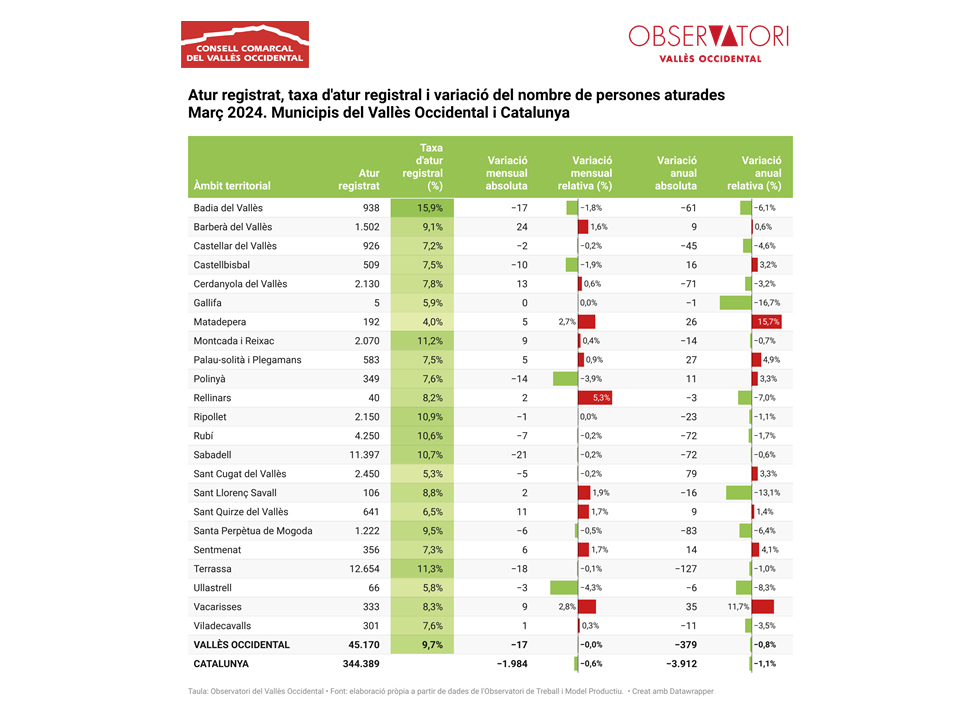 L’atur cau molt lleugerament al Vallès Occidental durant el mes de març
