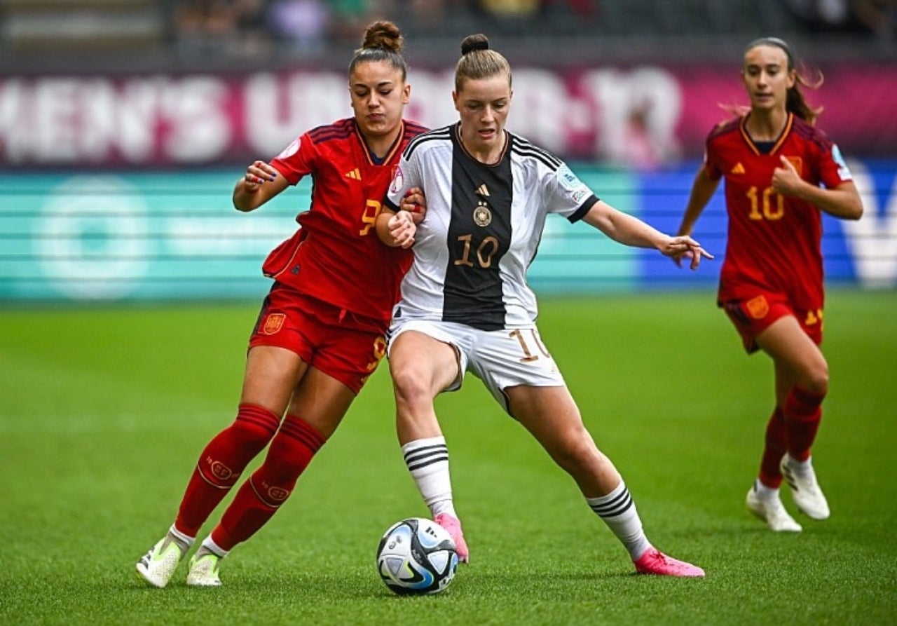 Alemanya va posar una marxa més just després de passar pels vestidors. Kathrin Peter va moure algunes peces i va demanar més agressivitat a les seves jugadores. Això va posar en dificultats a les espanyoles que van tenir com a gran protagonista a la seva portera, la blaugrana Txell Font. Per contrarestar la força germànica, la selecció va apostar per tenir la pilota i fer-se fortes en defensa.