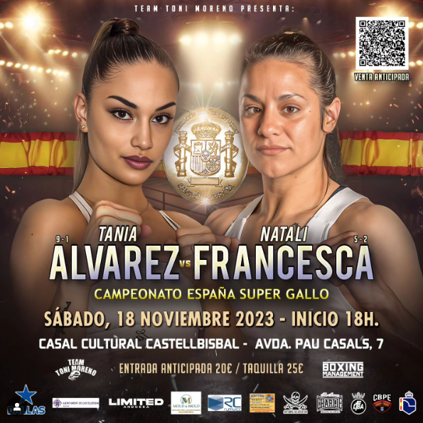 Tania “La Violencia” Álvarez s’enfrontarà el 18 de novembre a la catalana Natali Francesca pel campionat d’Espanya del pes supergall al Casal Cultural de Castellbisbal. En un principi, la boxejadora del Team Toni Moreno havia de combatre contra la campiona d’Espanya de pes supergall Karla Mérida, però aquesta va decidir no lluitar, ja que ha de disputar un títol de caràcter internacional i no estava disponible per les dates del combat.