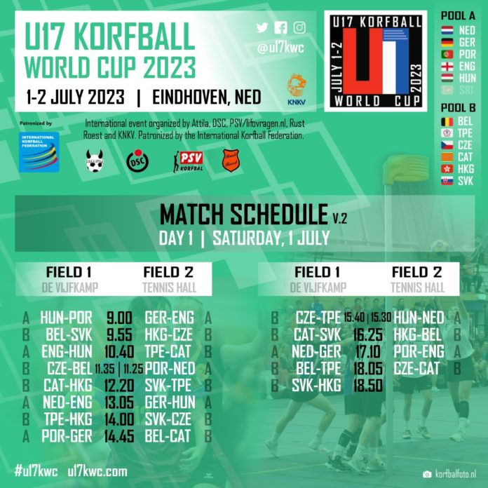 La U17 Korfball World Cup 2023 veurà com un total d’onze equips lluiten per alçar-se amb el títol. Per aconseguir-ho, hauran de superar una primera fase en què quedaran distribuïts en dos grups. Catalunya ha quedat enquadrada al grup B, i els seus rivals seran: Bèlgica, Xina Taipei, Txèquia -els tres rivals a priori més forts-, Hong Kong i Eslovàquia. Tots els partits es disputaran al mateix dia, i per tant és una fase exigent en què els catalans hauran de saber dosificar-se i intentar patir el mínim desgast físic però sense abaixar el nivell si volen tenir èxit.