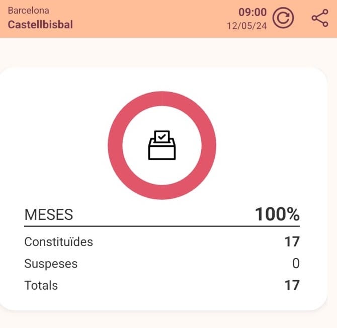 La jornada electoral arrenca a Castellbisbal amb l’obertura dels 3 col·legis electorals del poble i la constitució de les 17 meses que els conformen. Segons informa la Generalitat de Catalunya mitjançant la seva aplicació ‘Eleccions Catalunya 2024’, totes les meses a Castellbisbal han estat constituïdes sense incidències. Enguany, un total de 9.750 castellbisbalencs i castellbisbalenques estan cridats a les urnes.