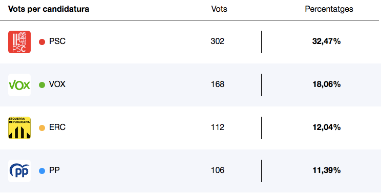 Aquest diumenge, 12 de maig, s’han celebrat les eleccions al Parlament de Catalunya 2024. Gràcies a l’aplicació creada per la Generalitat de Catalunya per a l’ocasió, podem saber amb exactitud quins han estat els resultats dels tres col·legis electorals de Castellbisbal. En aquest sentit, a continuació us explicarem quines han estat les formacions polítiques més votades al Centre Cívic de Can Santeugini.