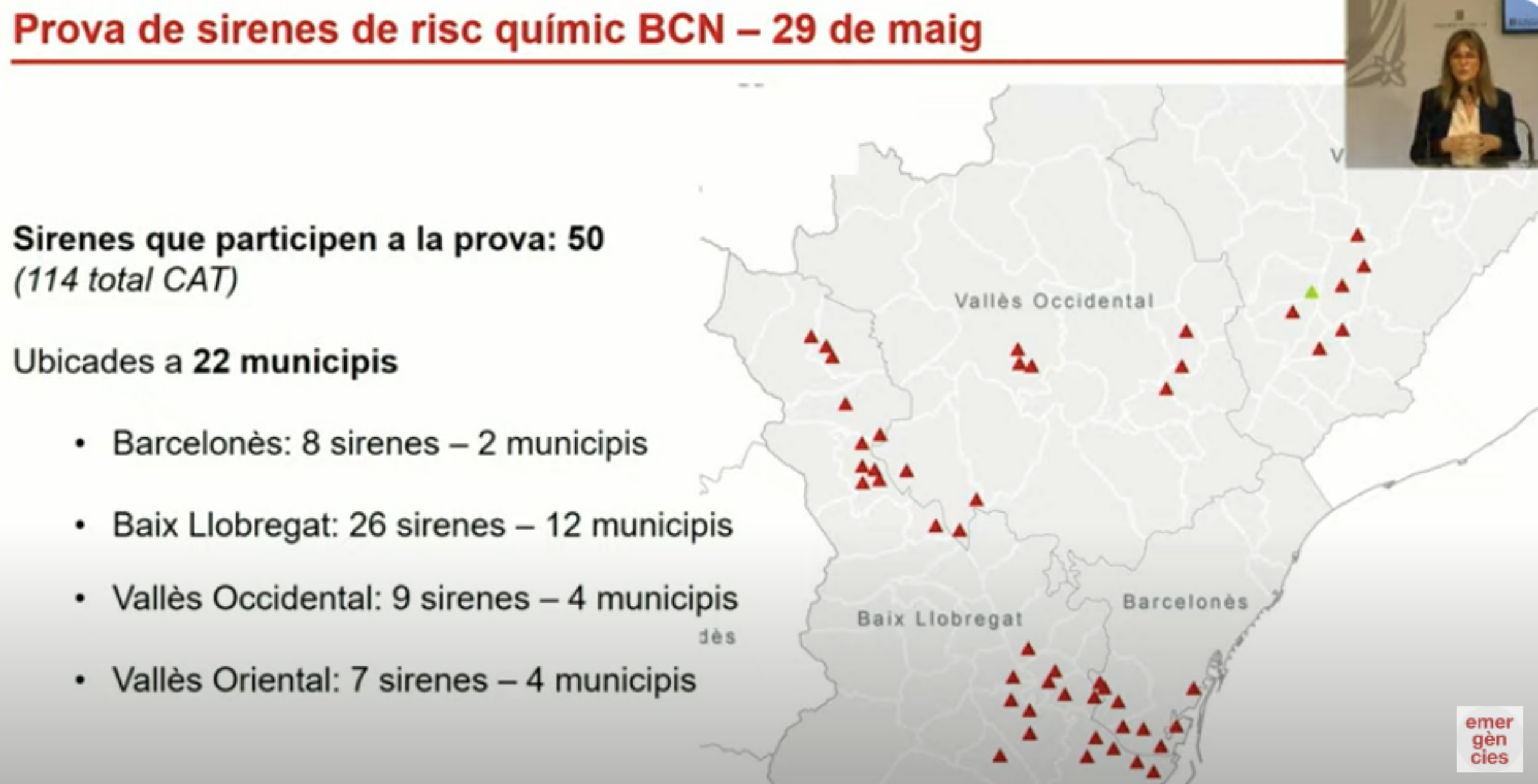 A Castellbisbal hi ha instal·lades tres sirenes de risc químic que estan ubicades a la urbanització de Costablanca i als polígons industrials de Sant Vicenç i de Ca n’Estaper. Tot i això, també es podran escoltar les sirenes a localitats properes com Terrassa (3 sirenes), Polinya (2 sirenes) i Santa Perpètua de Mogoda (1 sirena). En total, al Vallès Occidental sonaran 9 sirenes.
