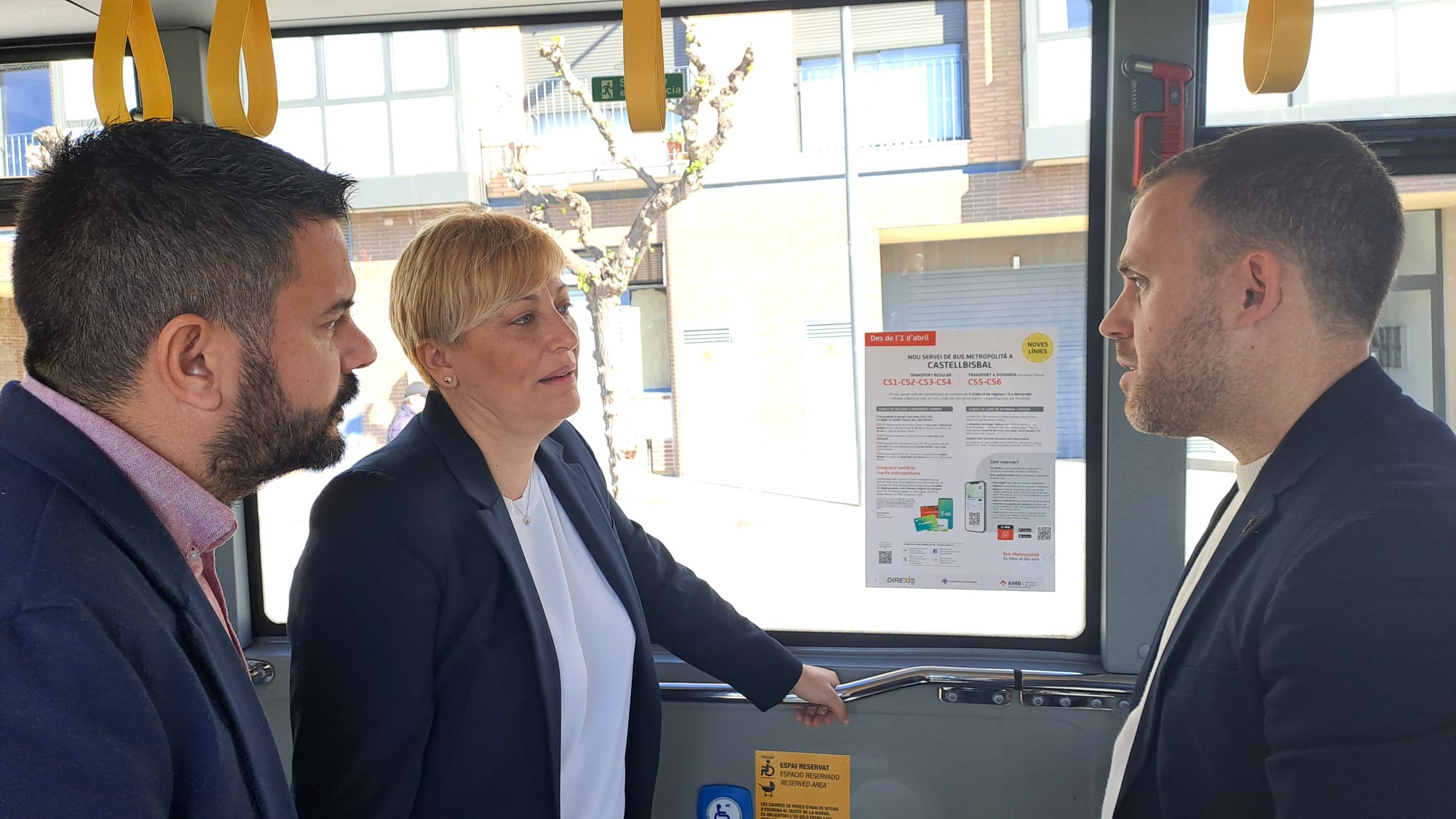 A més, l’alcaldessa també ha subratllat la incorporació de les dues noves línies sota demanda, un servei que “és molt còmode, ja que amb el teu mòbil reserves el teu viatge” i que recalca que “amb la dispersió que tenim a nivell territorial, el bus a demanda s’havia d’aplicar sí o sí”. Una vegada finalitzada la roda de premsa, Maria Dolors Conde Domínguez i Carlos Cordón, acompanyats d’altres representants de l’Ajuntament de Castellbisbal i l’AMB, han realitzat un breu recorregut amb l’autobús per estrenar aquest nou servei.