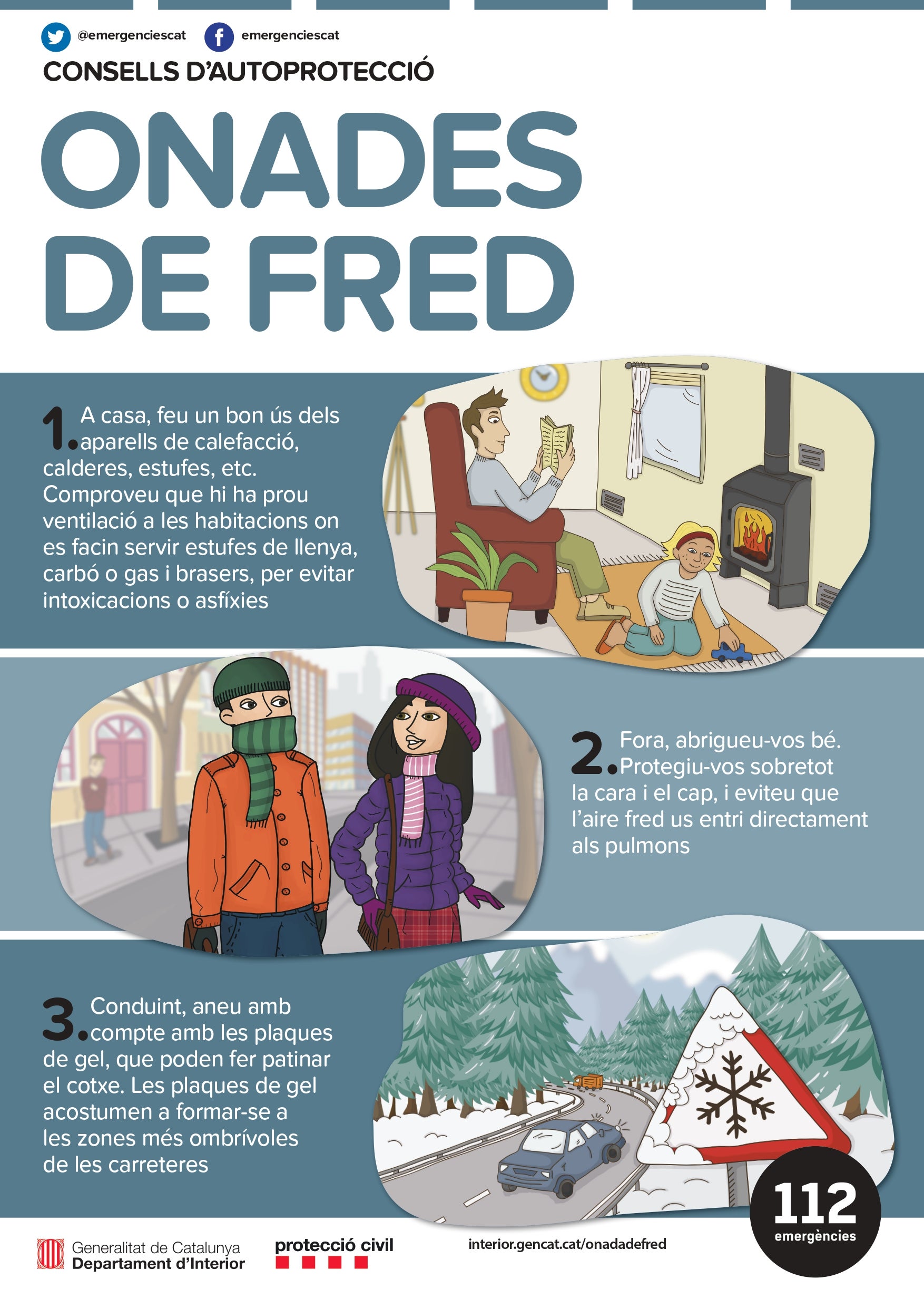 Recordeu que, en cas de necessitar ajuda, podeu trucar al 112 i seguir les indicacions de les autoritats. “Preneu consciència del risc i extremeu les mesures d’autoprotecció”, alerten des del Consistori. Per a més informació sobre l’evolució d’aquesta alerta de risc per fred, podeu consultar els webs d’informació meteorològica i viària.