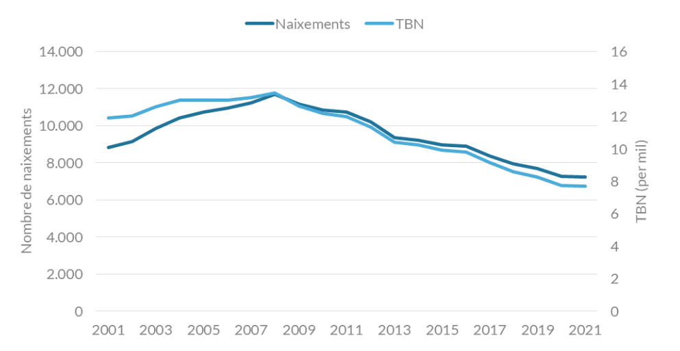 Segons les dades de l’Observatori del Consell Comarcal del Vallès Occidental, la taxa bruta de natalitat va experimentar un descens del 0,4% entre els anys 2020 i 2021 a tot el Vallès Occidental, i més d’un 6% respecte al 2019.