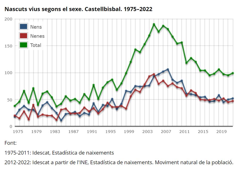 La disminució del 35,71% en els naixements a Castellbisbal en l’última dècada és un avís i un senyal necessari a tenir en compte per a poder garantir un futur demogràfic més equilibrat i sostenible.