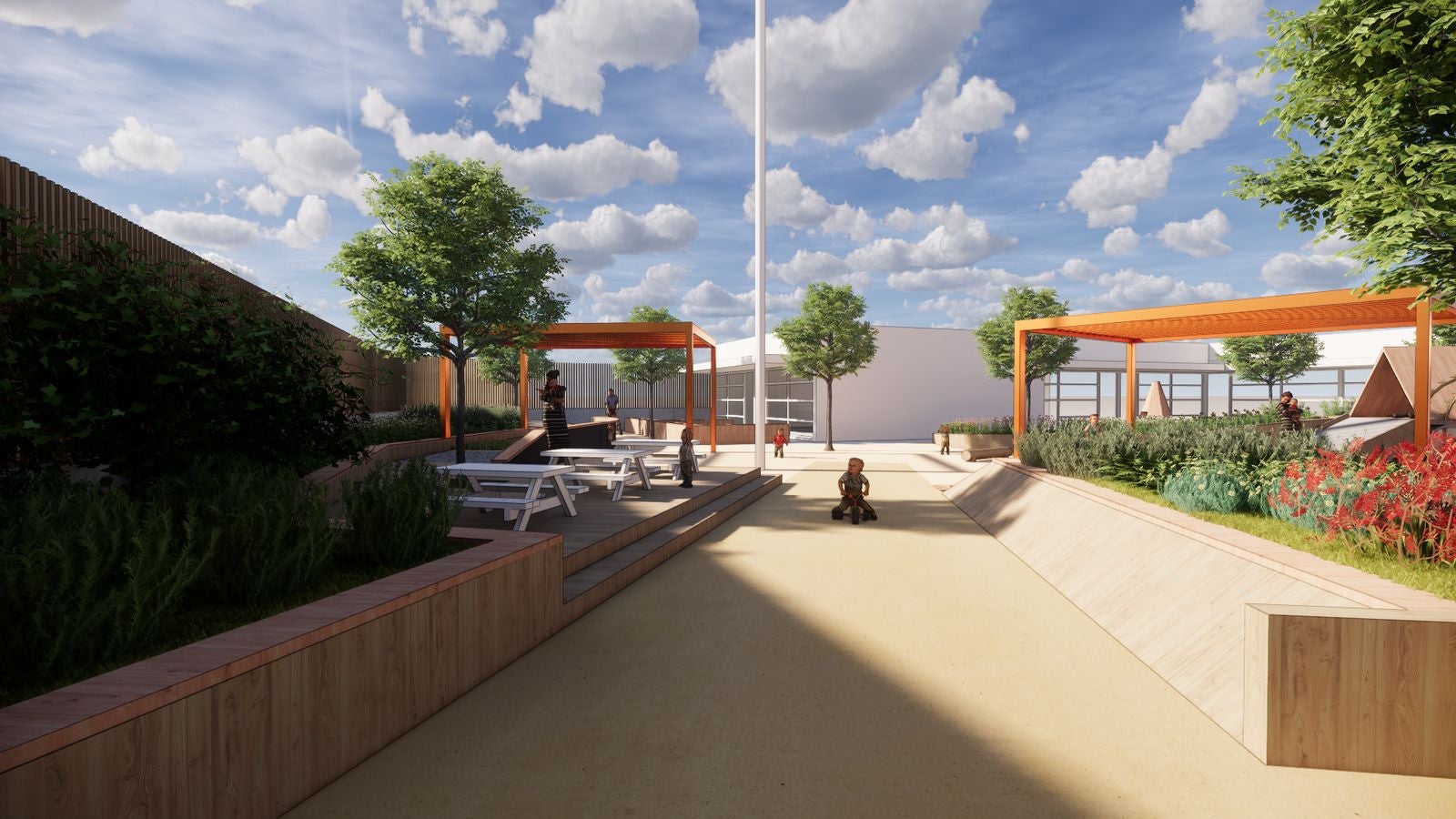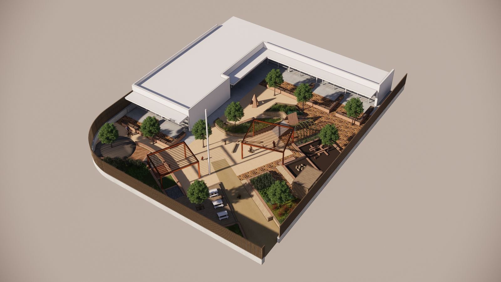 Les accions de remodelació que es duran a terme inclouen la renovació de tot el paviment, adaptant els materials a les característiques i necessitats de cada zona, així com la construcció d’una nova xarxa de sanejament i de recollida de les aigües pluvials. Es col·locaran també dues pèrgoles amb coberta vegetal que asseguraran espais d’ombra al pati en els mesos d’estiu, però també deixaran passar la llum solar en els mesos més freds de l’any.