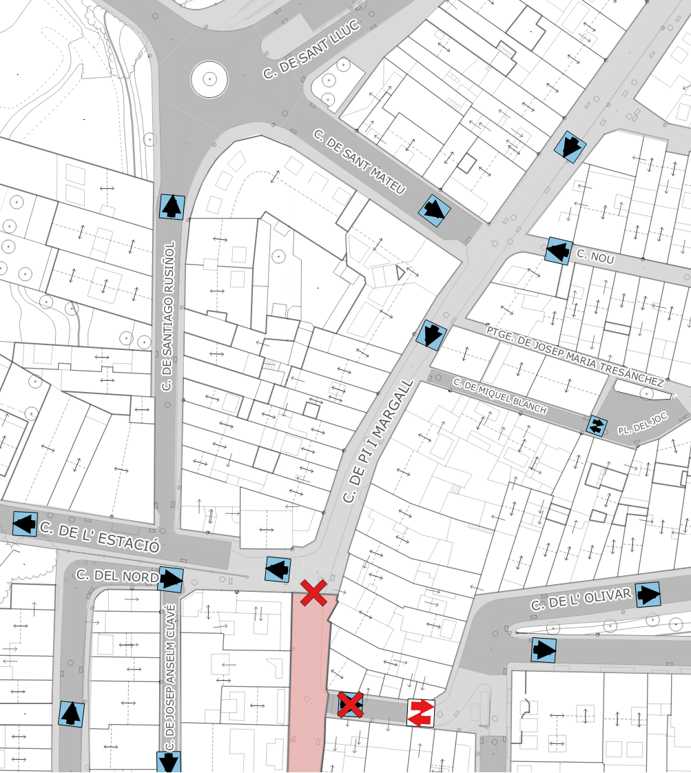 Concretament, en el carrer de Sant Mateu, s’ha eliminat la doble circulació que fins ara afectava la zona per les obres entre el Museu de la Pagesia i el carrer de Sant Lluc. D’aquesta manera, el carrer ha tornat a ser d’un únic sentit en direcció al carrer Pi i Maragall. Per altra banda, en el carrer Santiago Rusiñol també s’ha eliminat el canvi de direcció a causa de les obres i el sentit torna a ser en direcció al carrer de Sant Mateu.