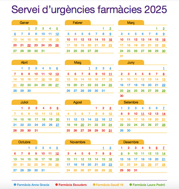 A continuació us deixem el calendari on es detallen els serveis de urgència de les farmàcies de Castellbisbal: