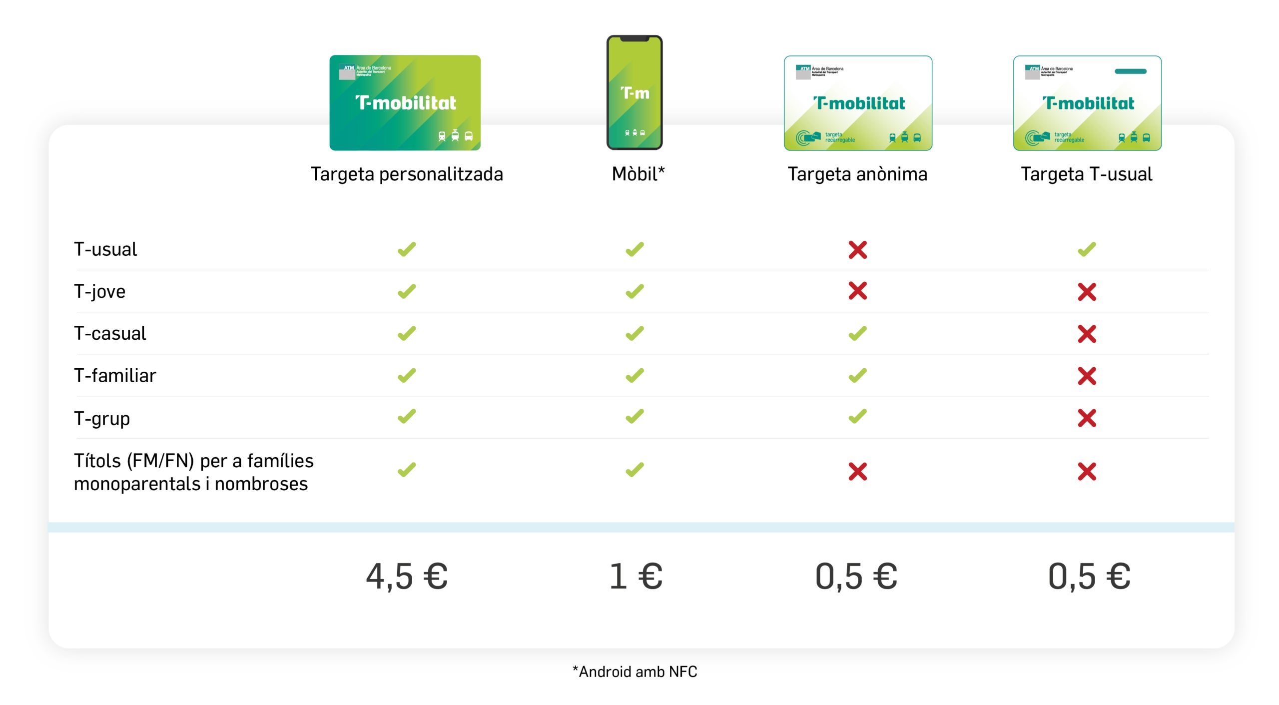 Cal tenir en compte que no tots els formats oferiran les mateixes funcions. La targeta de plàstic i el mòbil, en estar vinculades digitalment amb un usuari, tindran alguns avantatges respecte als formats de cartró, com el de recuperar els viatges en cas de pèrdua o robatori.