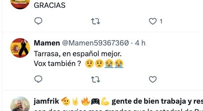 De la ‘lluita’ perquè se’n digui Tarrasa i no Terrassa ningú se n’escapa. Ni tan sols VOX, paladí de la llengua espanyola. La formació liderada per Alícia Tomás va iniciar el seu camí polític fent ús del topònim Tarrasa però ben aviat, en el moment que va començar a agafar volada, van canviar els perfils sota el nom de VOX Terrassa i els hastags que utilitzen també porten la nomenclatura oficial (per exemple el ja conegut com a #laTerrassaDeAlicia.