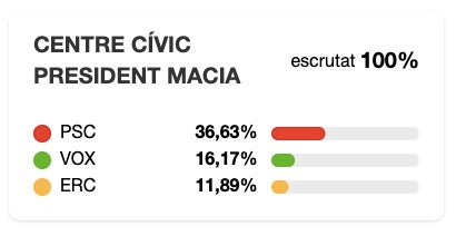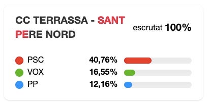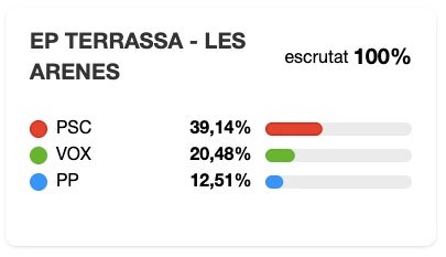 Quant a la participació, ha estat de 46,68%, per sota de la mitjana terrassenca.