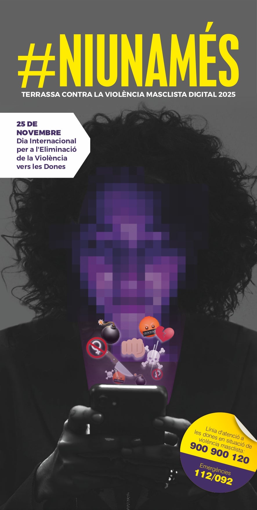 La imatge de la campanya d’enguany també està centrada en la violència masclista a Internet. “Es tracta d’una dona jove que pateix violència digital i les emoticones representen el control, les amenaces, la por i el perill que pateix i tota l’angoixa que significa”, ha explicat Melgares. A més, Terrassa repeteix el lema de ‘Ni una més’, una frase que “representa l’expressió de la lluita feminista” i que “posa de manifest que aquestes violències no són menys greus, sinó que els hem de donar la importància que tenen”, ha assegurat Melgares.